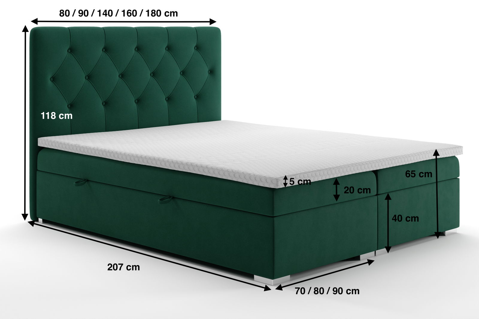 Pat matrimonial Boxspring 160 cm Ronda (verde închis) (cu sp. depozitare)