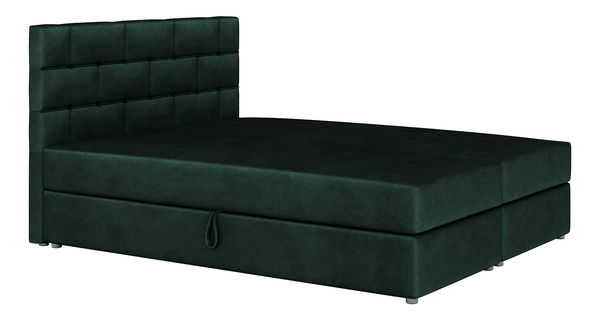 Pat matrimonial Boxspring 160x200 cm Waller Comfort (verde închis) (cu somieră și saltea)
