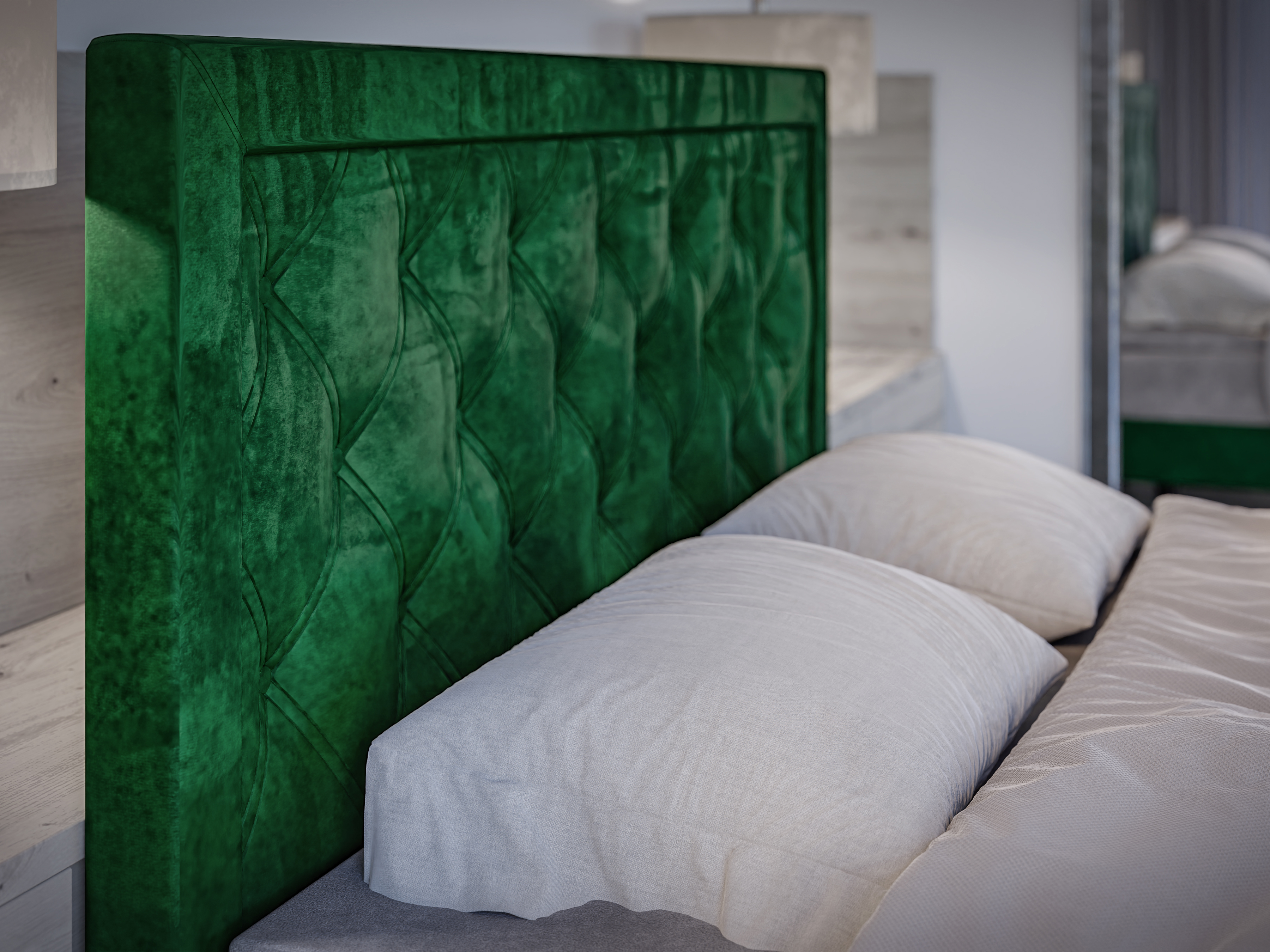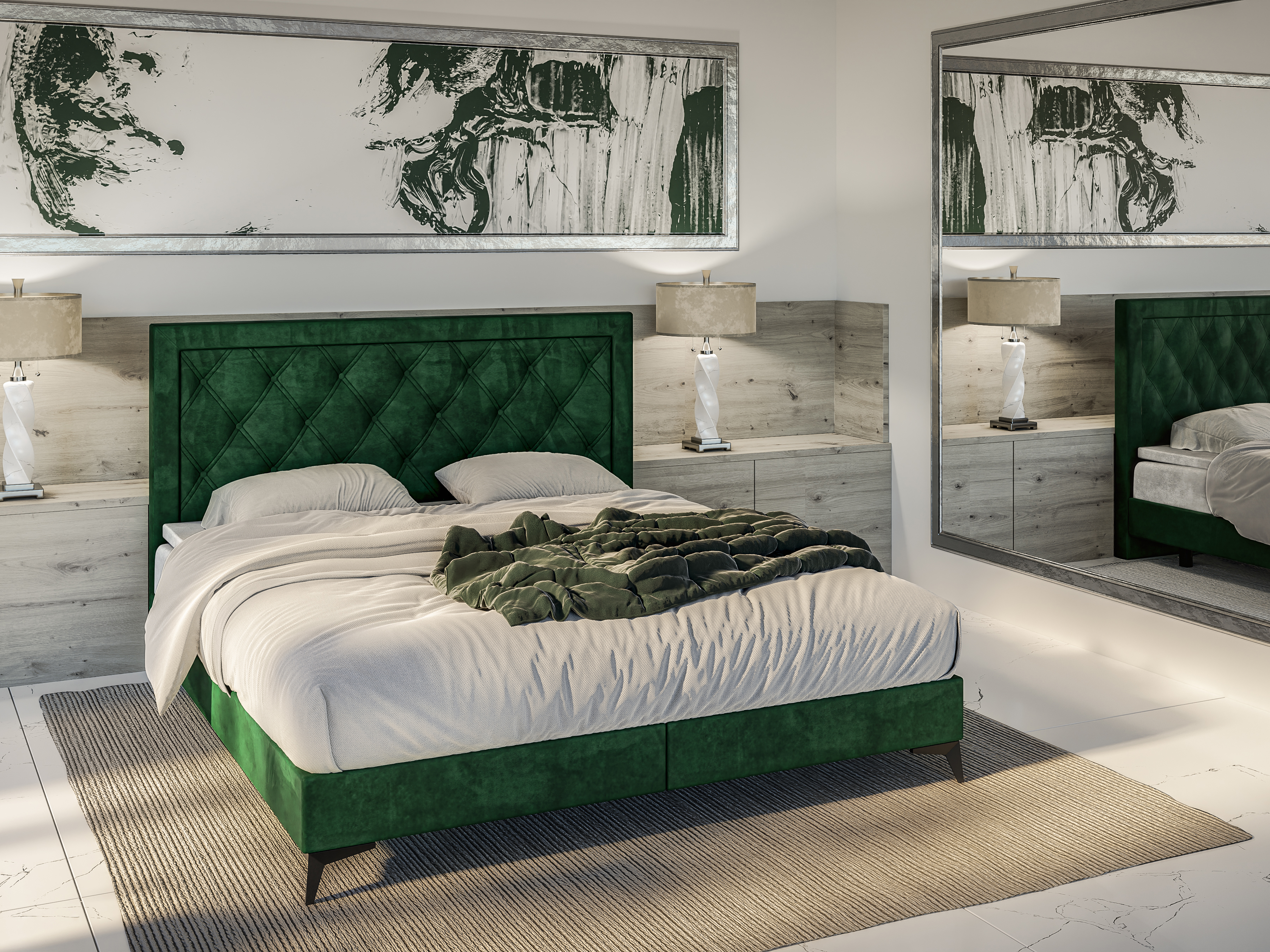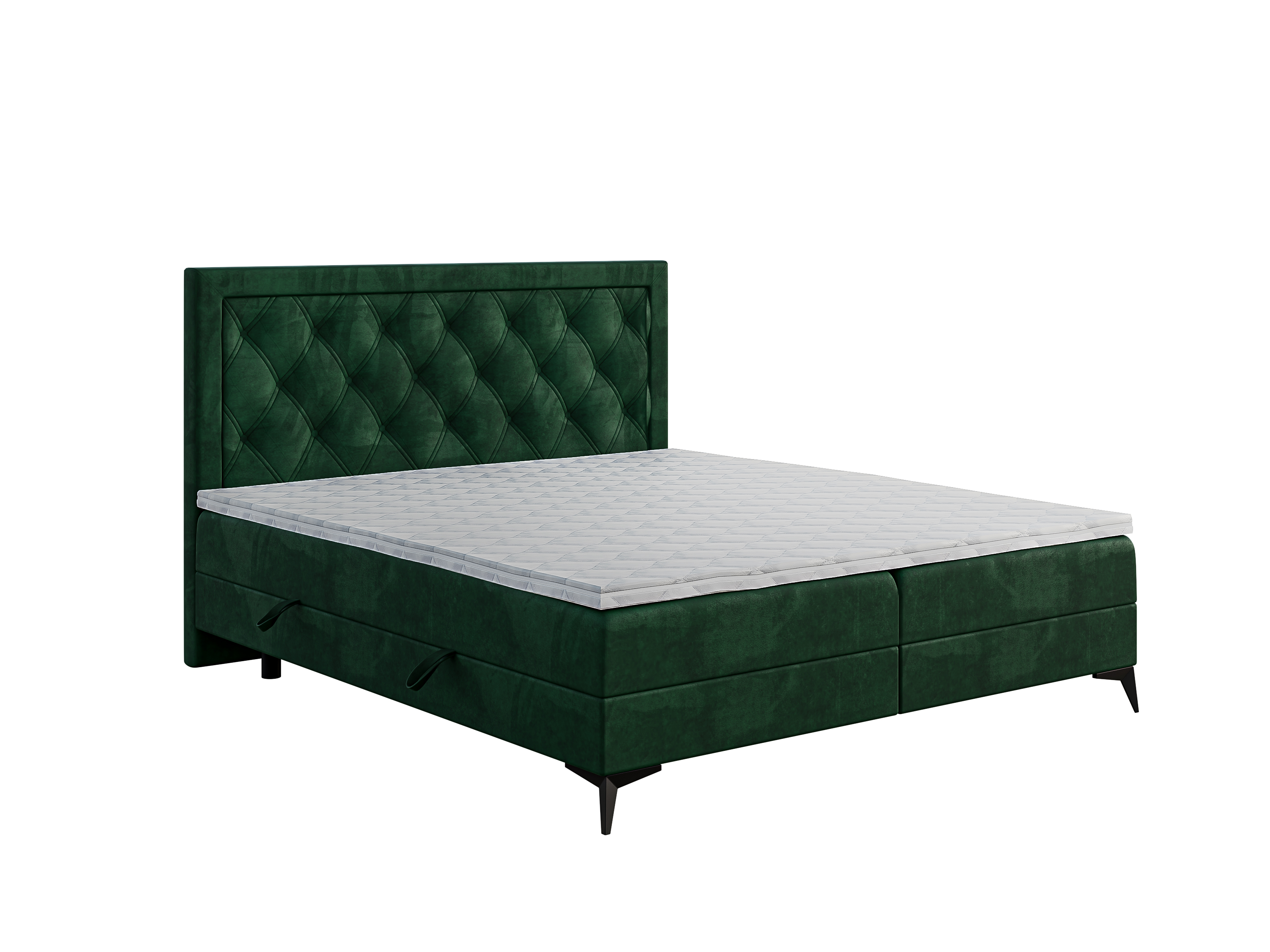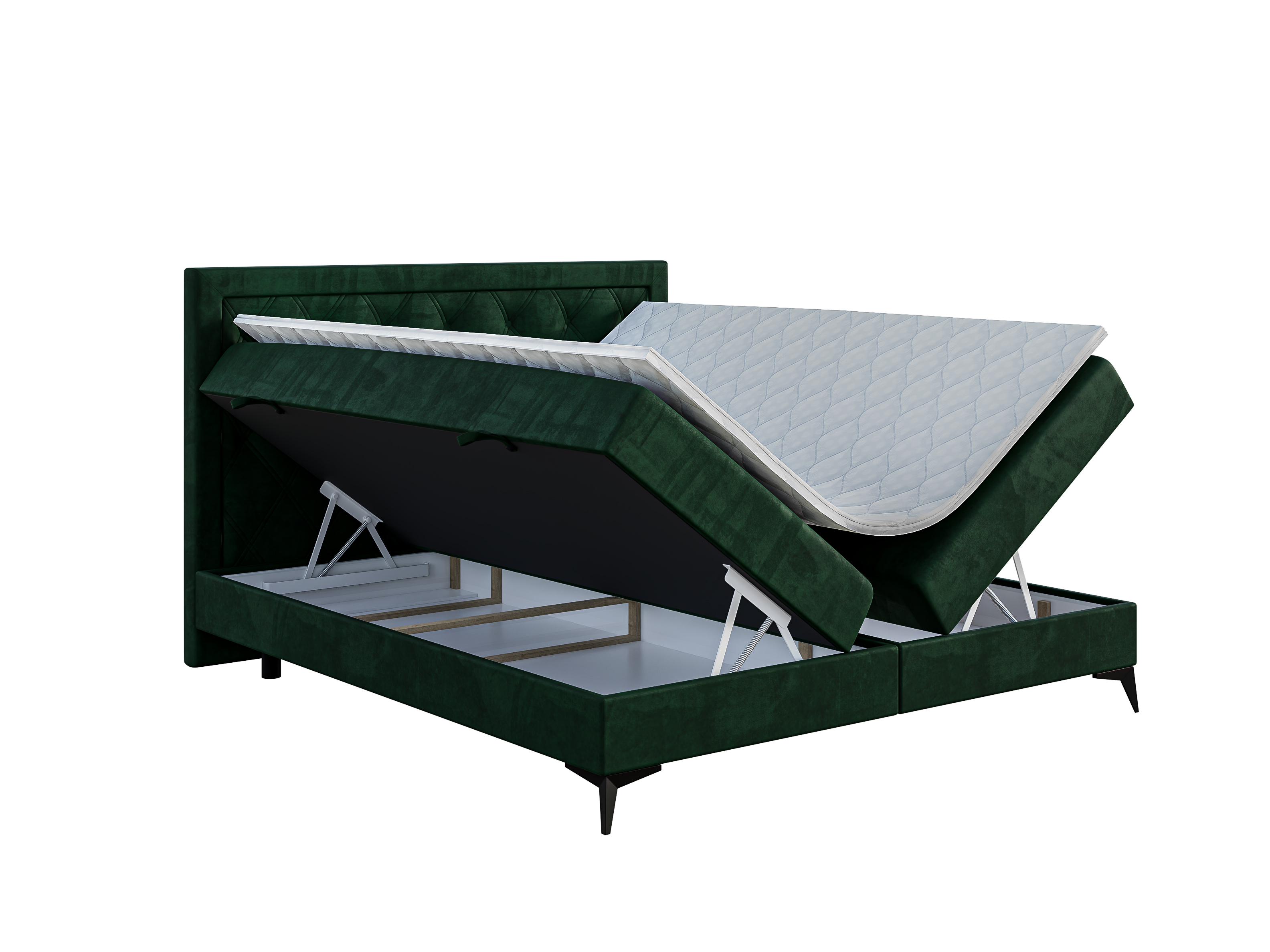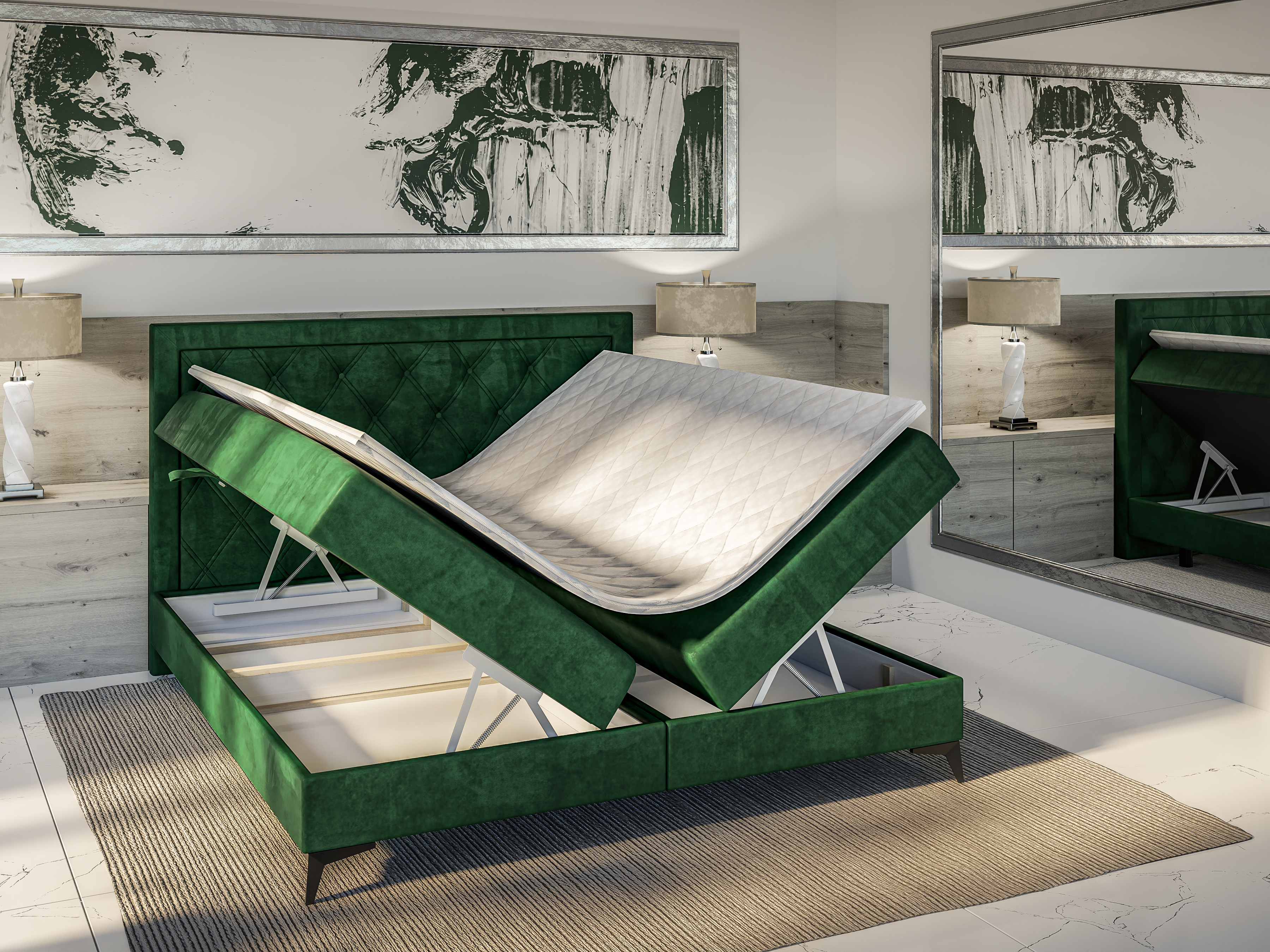 Pat matrimonial Boxspring 180 cm Dustin (tmavoVerde) (cu saltea și sp. depozitare)