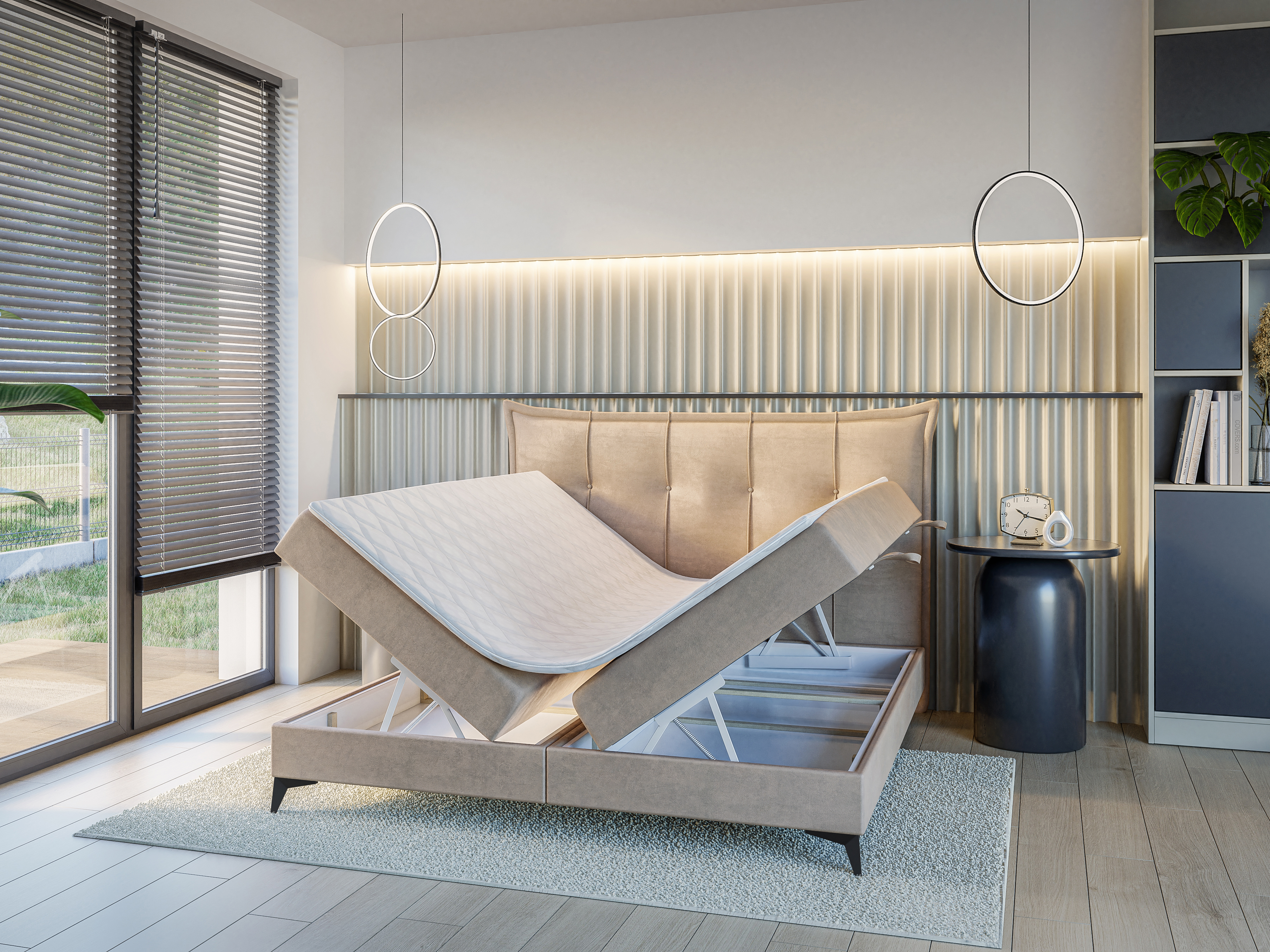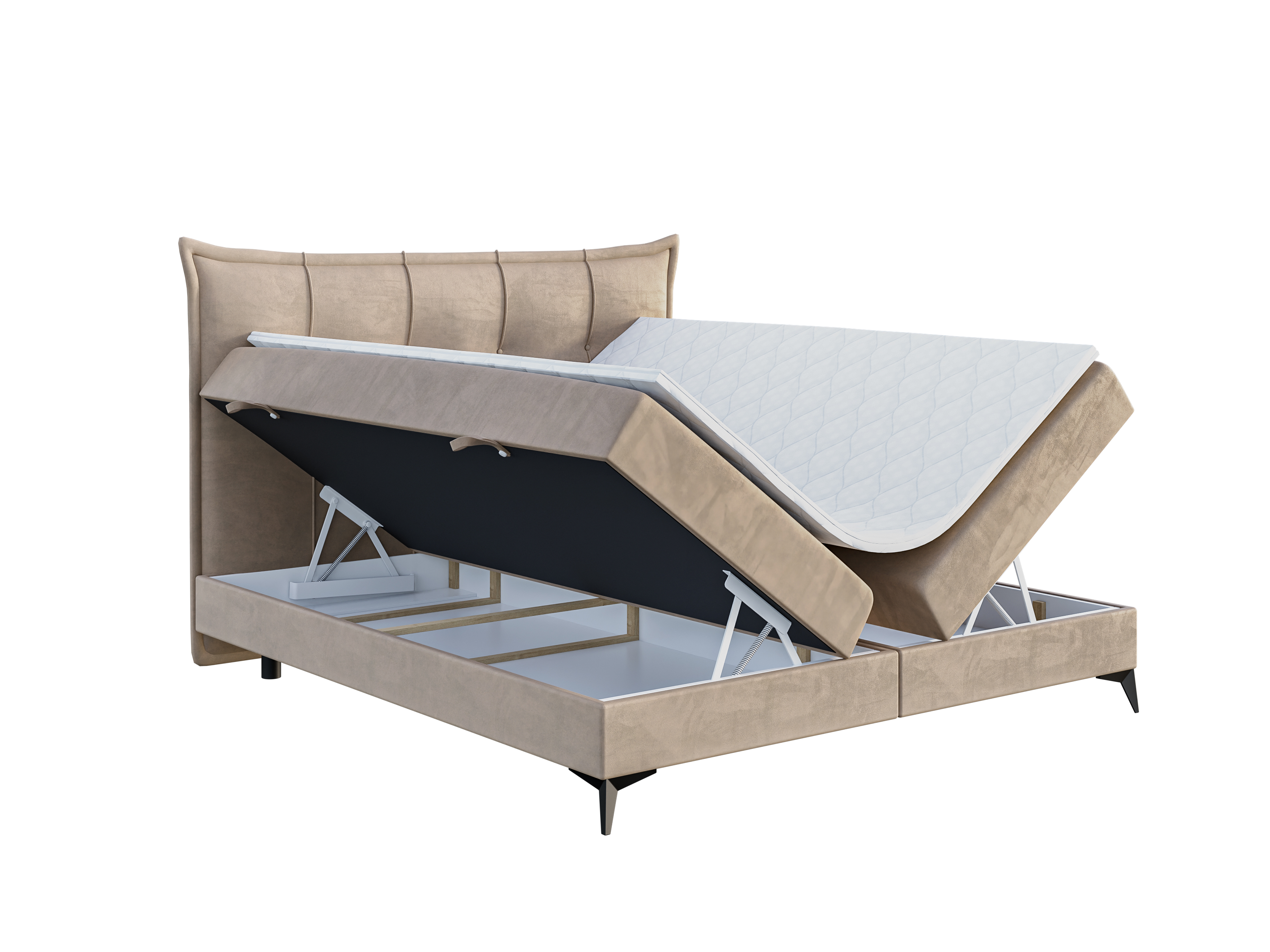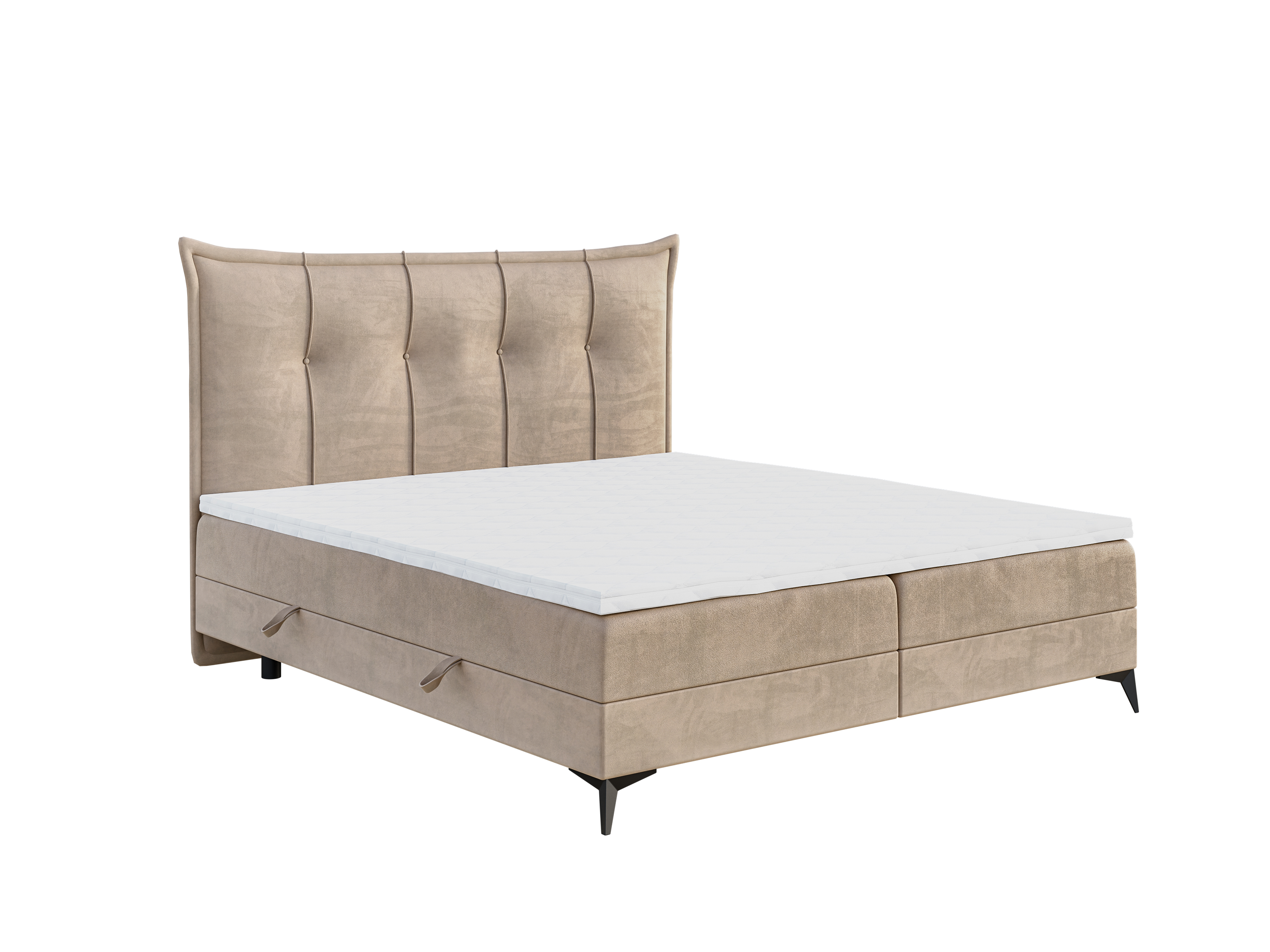Pat matrimonial Boxspring 180 cm Foxtrot (bej deschis) (cu saltea și sp. depozitare)