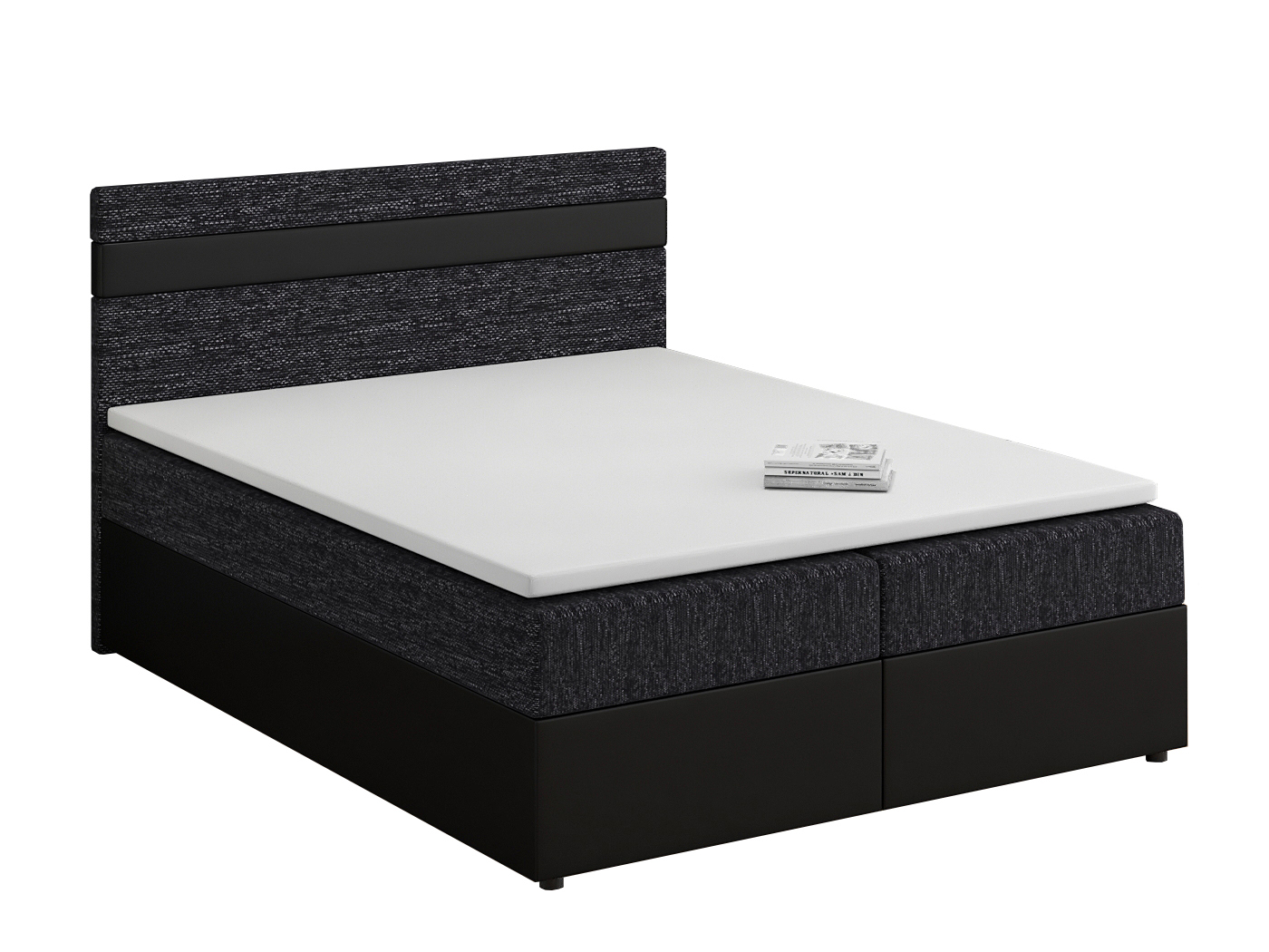 Pat înalt și confortabil Boxspring este hitului perioadei curente. Are o înălțime mai ridicată, oferind astfel un confort mai ridicat la ridicarea din pat. Satelaua inferioară este din arcuri bonell și înlocuiește somiera lamelară. Partea superioră conține topper cu înălțime de 4 cm care poate fi comandat la preț suplimentare. Spațiu de depozitare este accesibil din lateral.