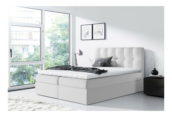 Pat matrimonial Boxspring Maddox (160x200) (piele ecologică Soft 017 (Alb))