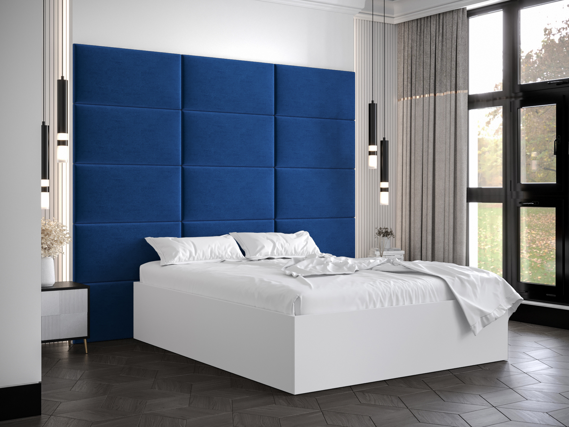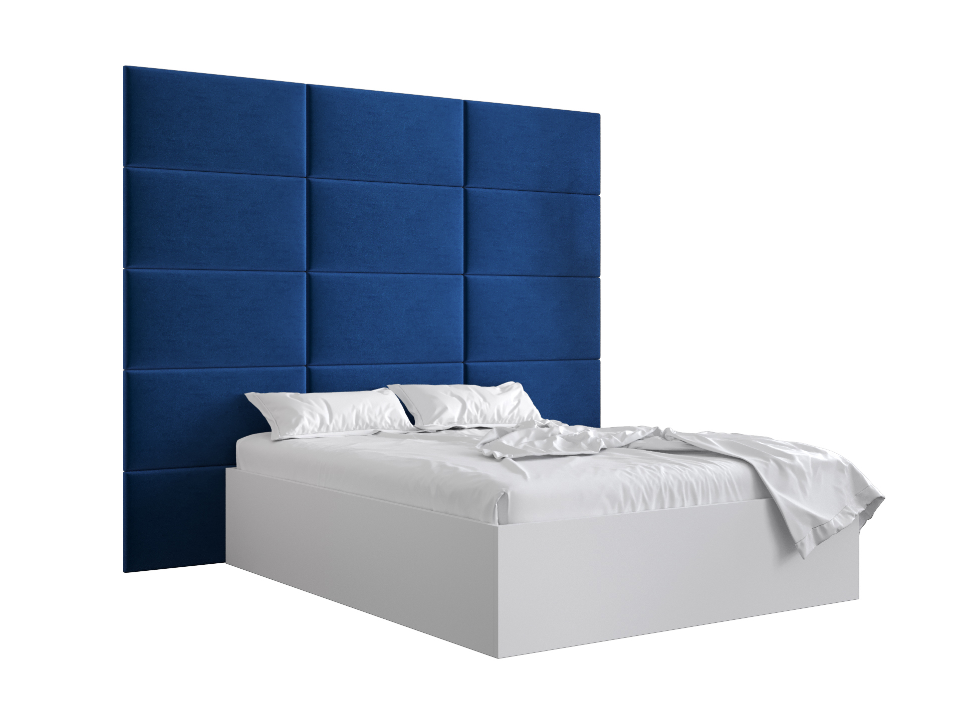 Pat matrimonial cu tăblie tapițată 160 cm Brittany 1 (Alb mat + albastru) (cu somieră)