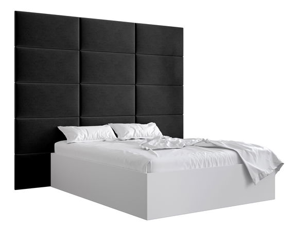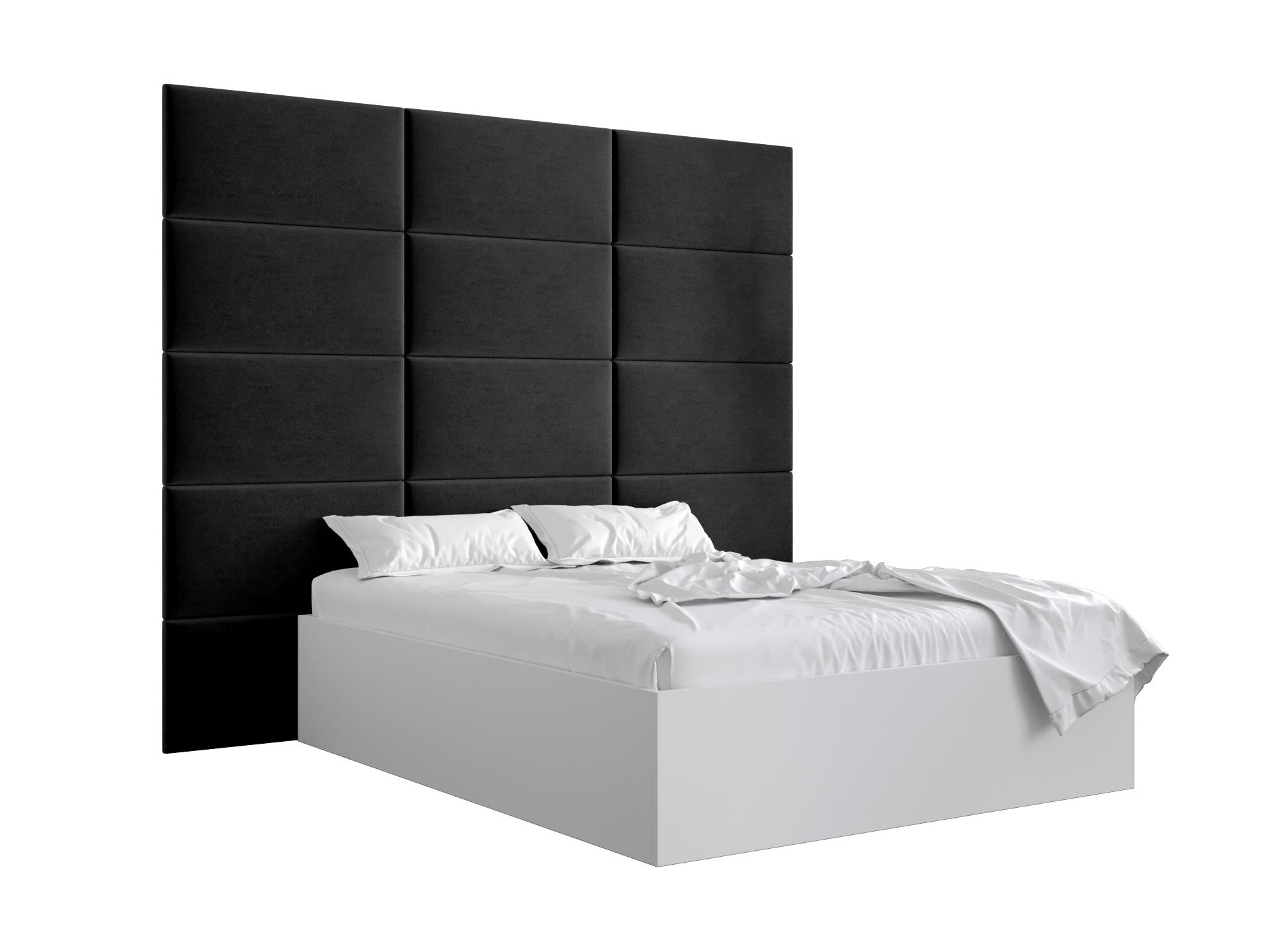 Pat matrimonial cu tăblie tapițată 160 cm Brittany 1 (Alb mat + Negru) (cu somieră)