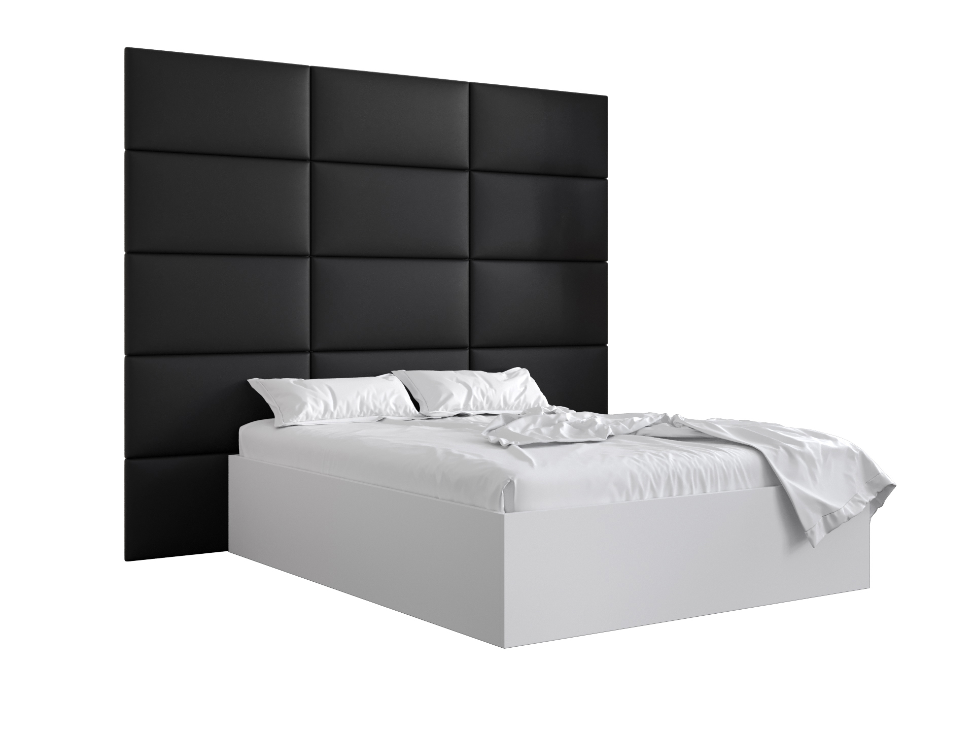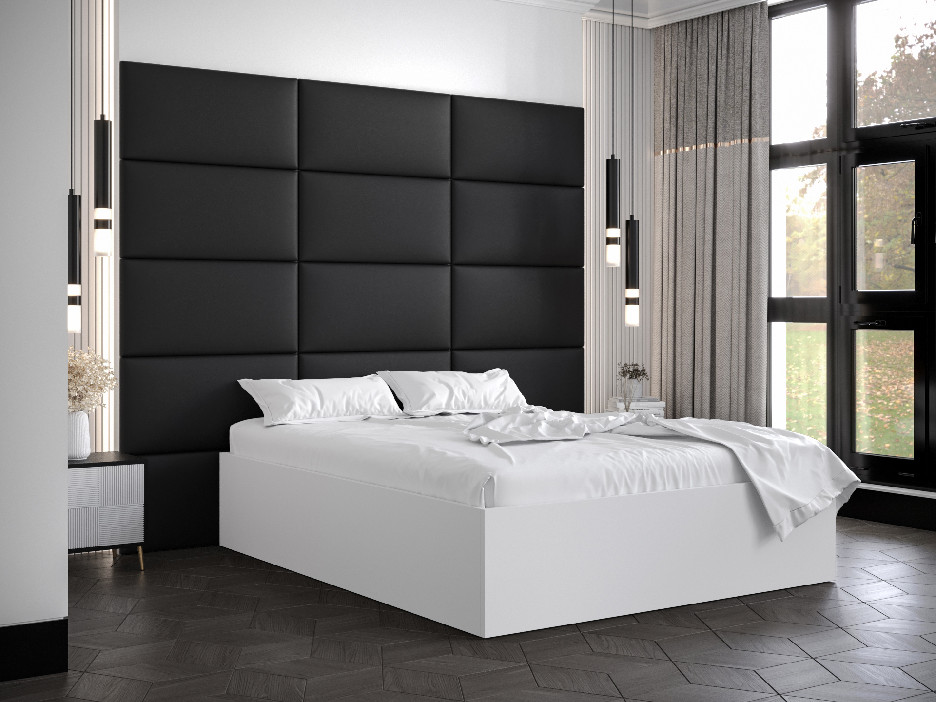 Pat matrimonial cu tăblie tapițată 160 cm Brittany 1 (Alb mat + Negru) (cu somieră)