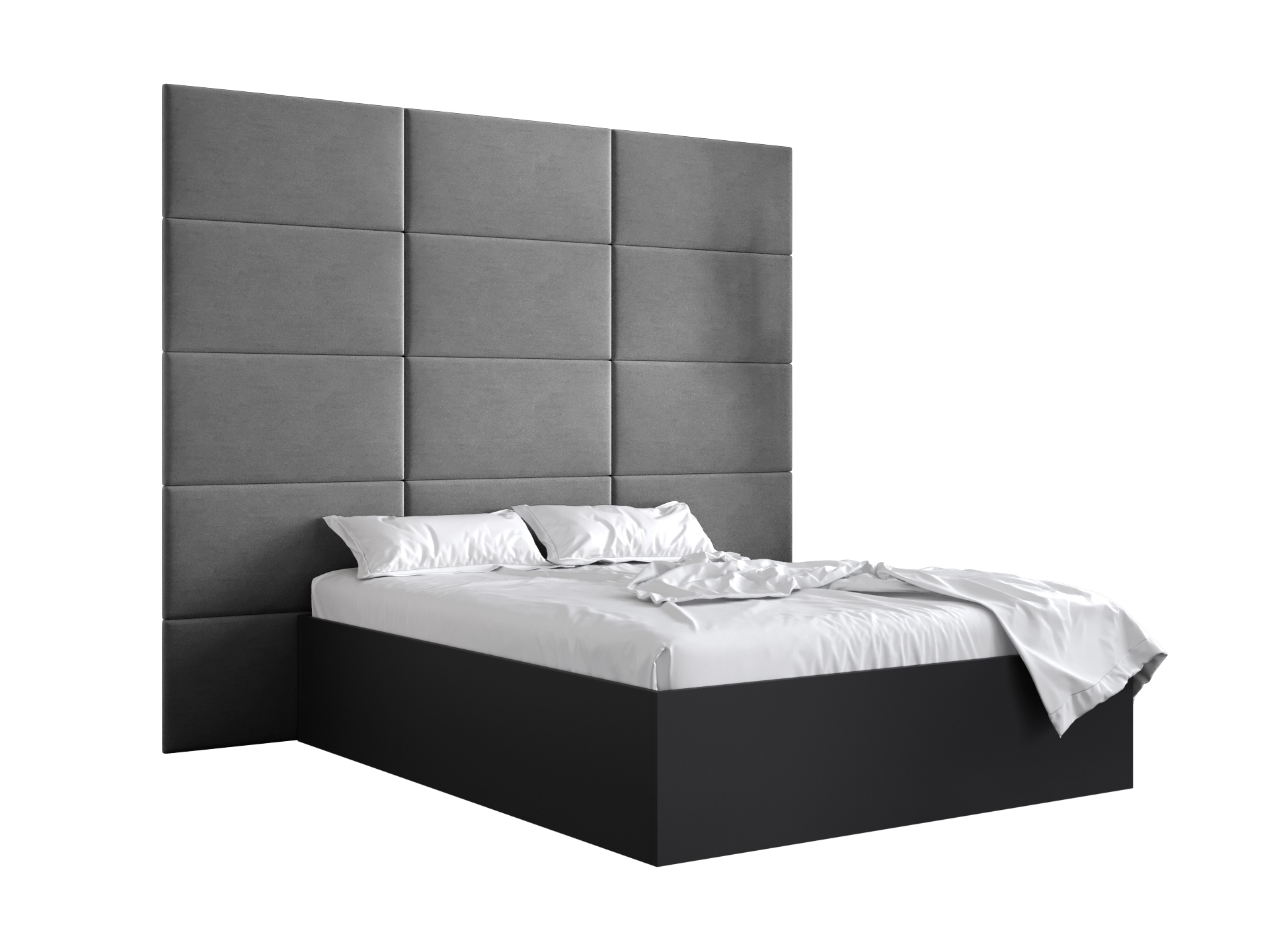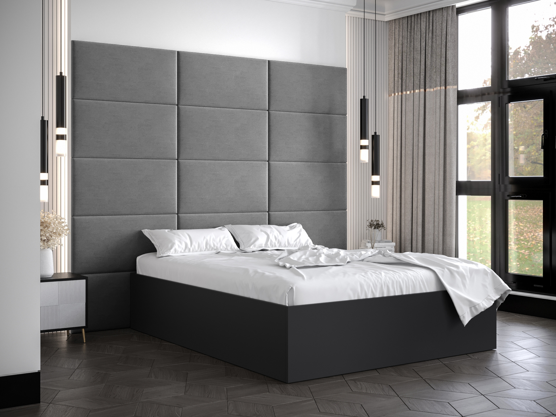 Pat matrimonial cu tăblie tapițată 160 cm Brittany 1 (Negru mat + gri) (cu somieră)