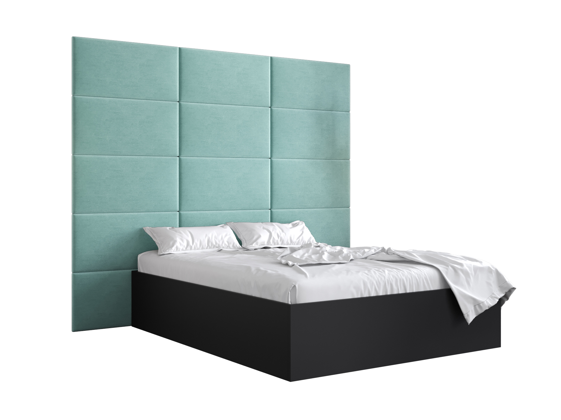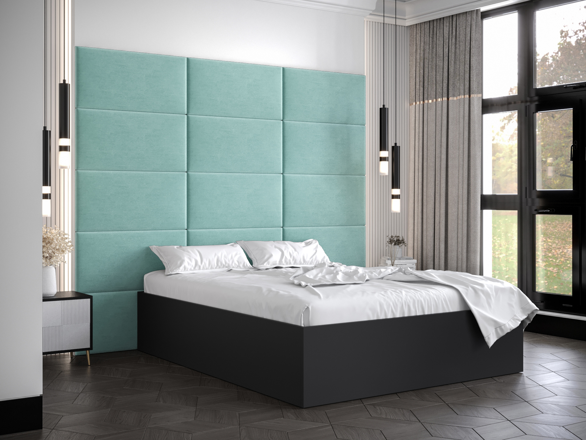 Pat matrimonial cu tăblie tapițată 160 cm Brittany 1 (Negru mat + mentă) (cu somieră)