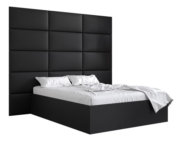 Pat matrimonial cu tăblie tapițată 160 cm Brittany 1 (Negru mat + Negru) (cu somieră)