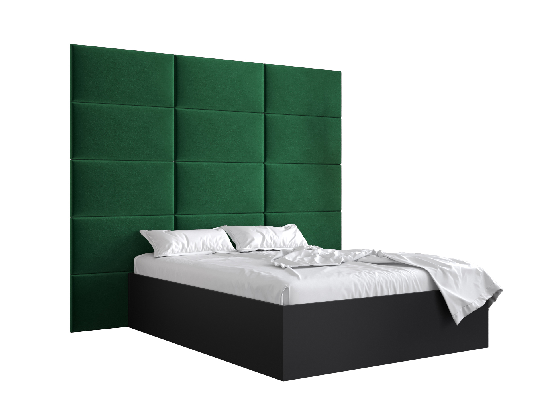 Pat matrimonial cu tăblie tapițată 160 cm Brittany 1 (Negru mat + verde) (cu somieră)