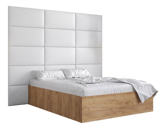 Pat matrimonial cu tăblie tapițată 160 cm Brittany 1 (Stejar craft auriu + Alb) (cu somieră)