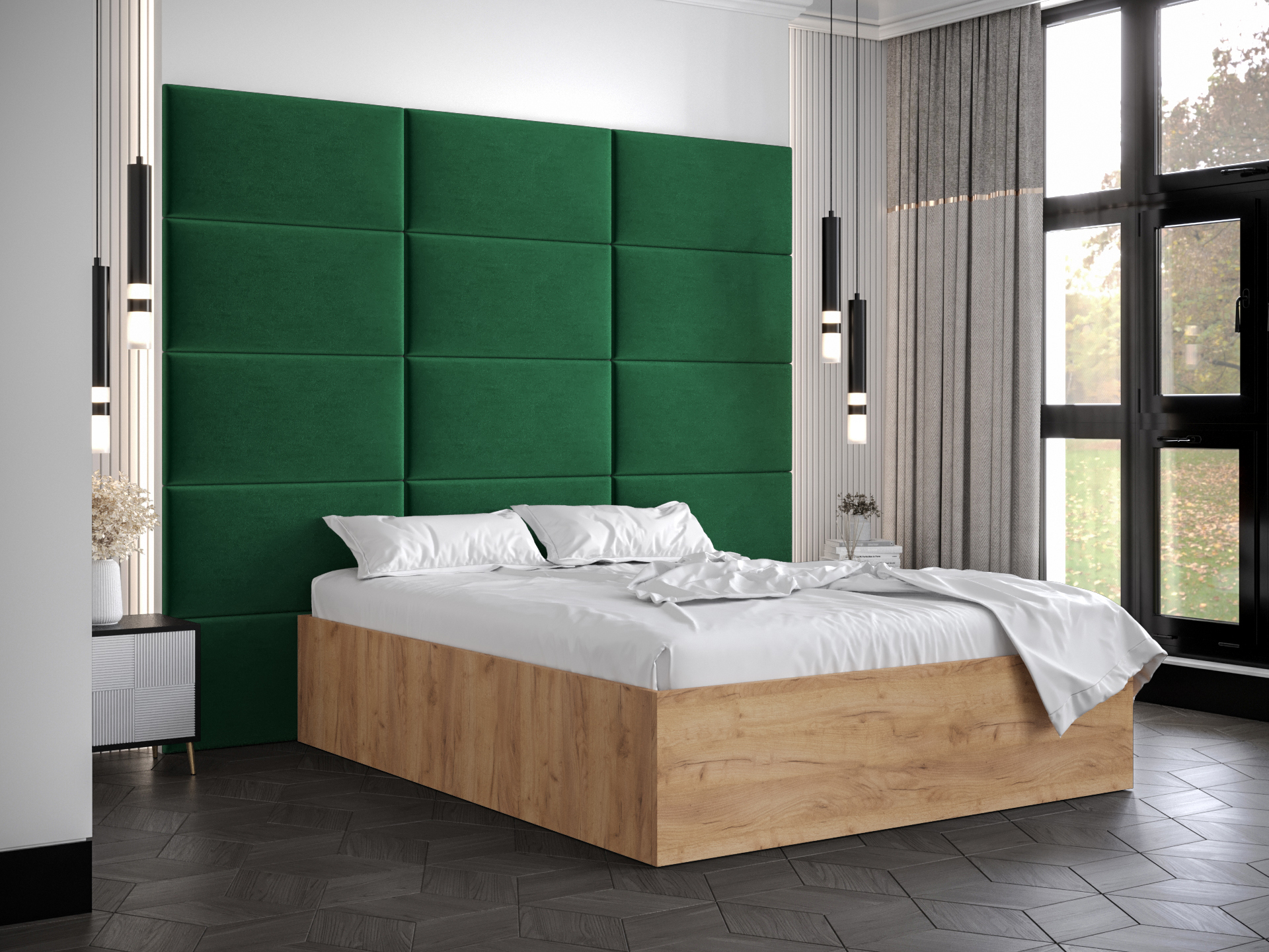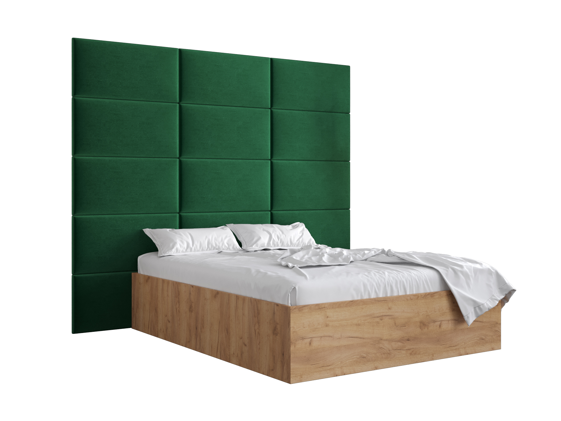 Pat matrimonial cu tăblie tapițată 160 cm Brittany 1 (Stejar craft auriu + verde) (cu somieră)