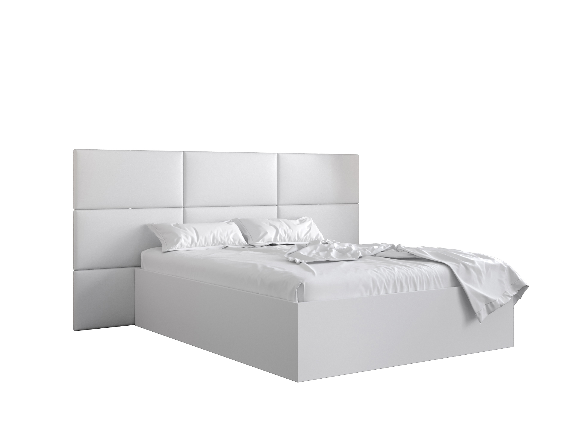 Pat matrimonial cu tăblie tapițată 160 cm Brittany 2 (Alb mat + Alb) (cu somieră)