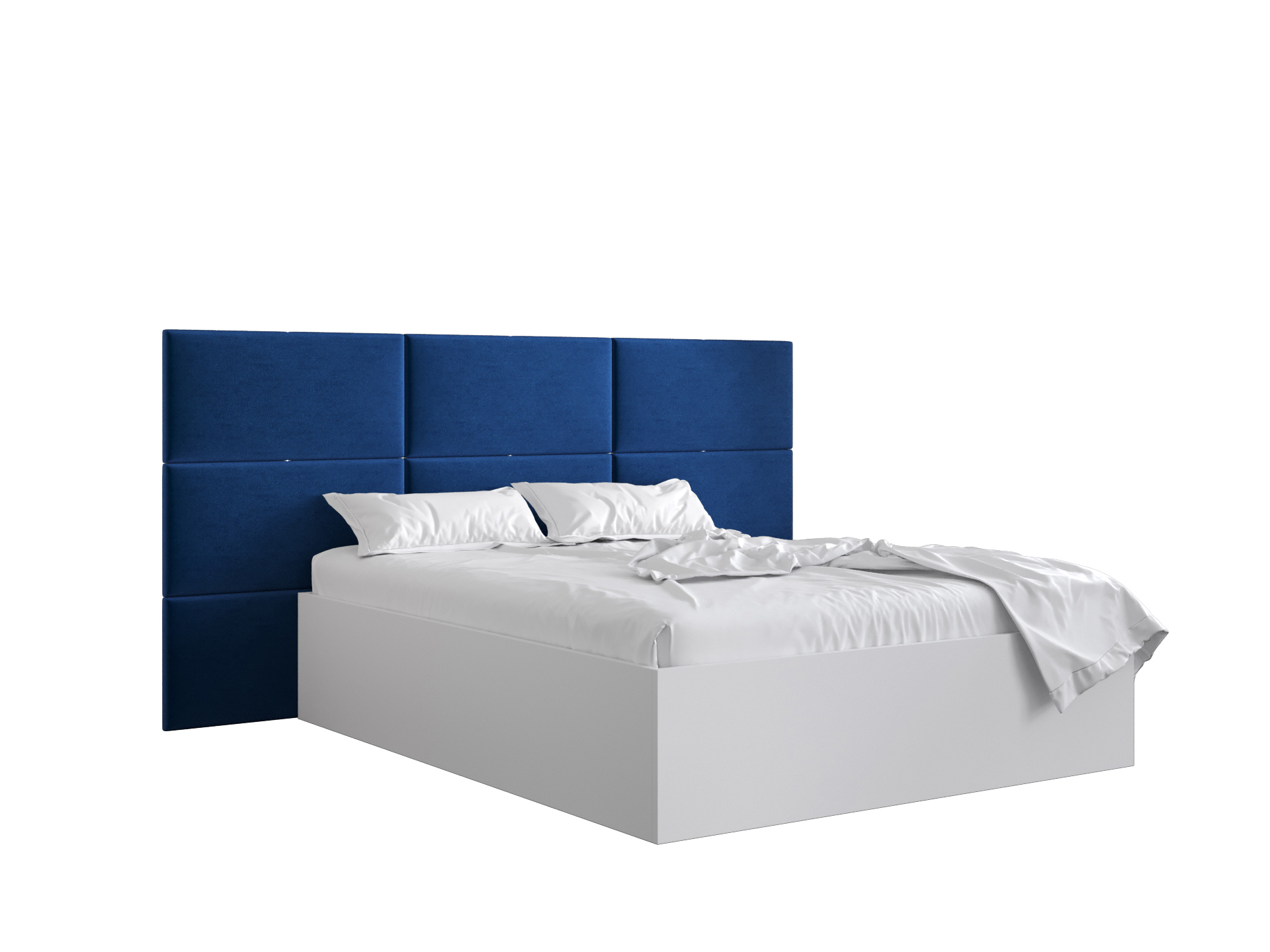 Pat matrimonial cu tăblie tapițată 160 cm Brittany 2 (Alb mat + albastru) (cu somieră)