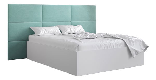 Pat matrimonial cu tăblie tapițată 160 cm Brittany 2 (Alb mat + mentă) (cu somieră)