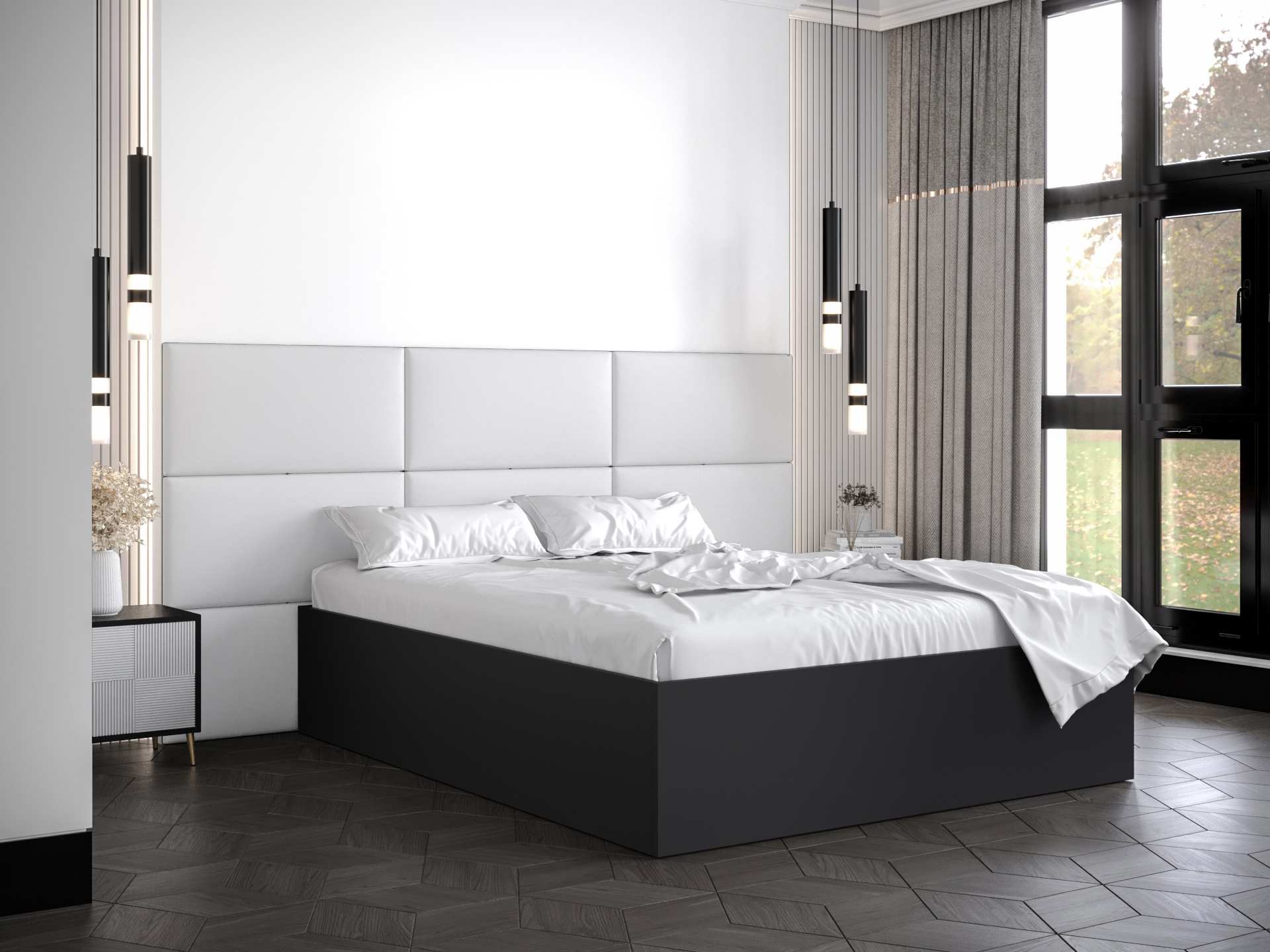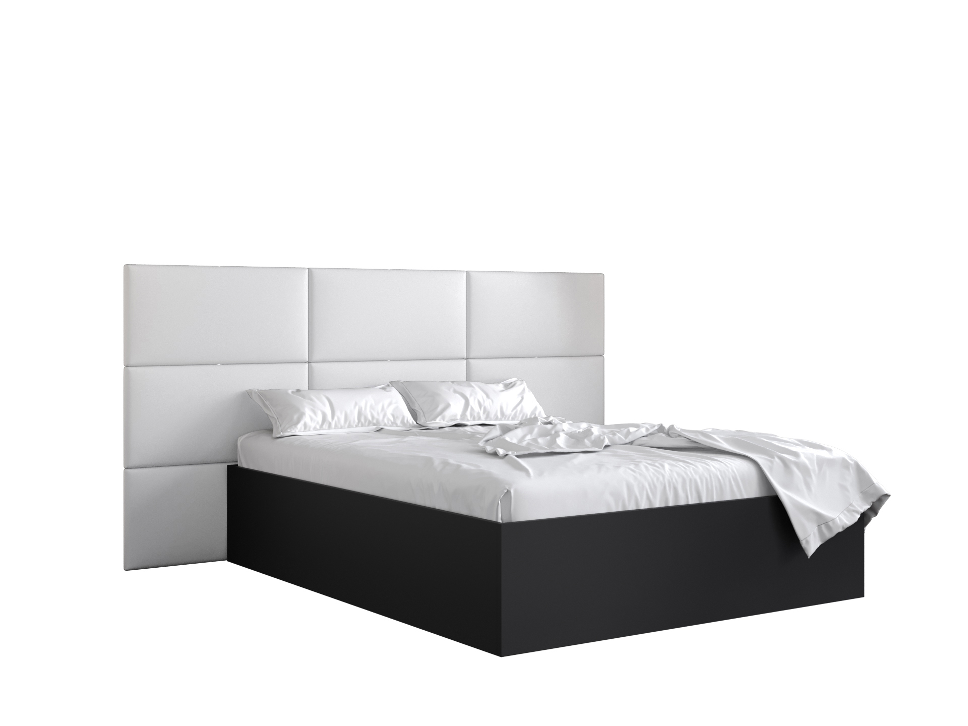 Pat matrimonial cu tăblie tapițată 160 cm Brittany 2 (Negru mat + Alb) (cu somieră)