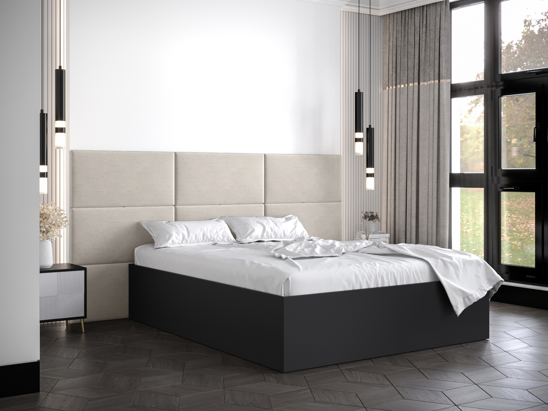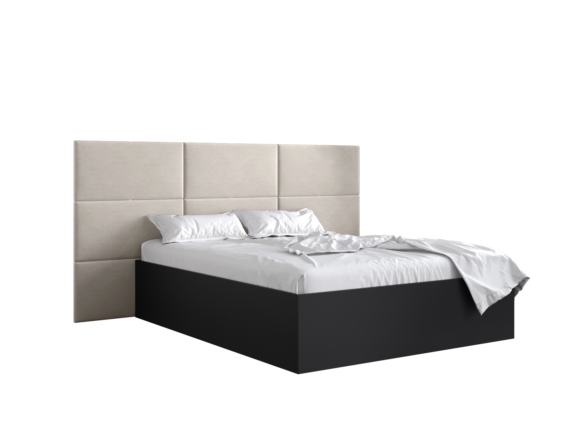 Pat matrimonial cu tăblie tapițată 160 cm Brittany 2 (Negru mat + crem) (cu somieră)