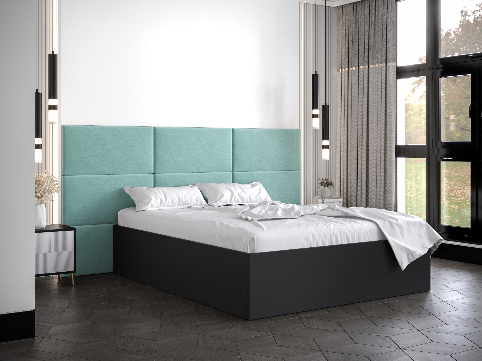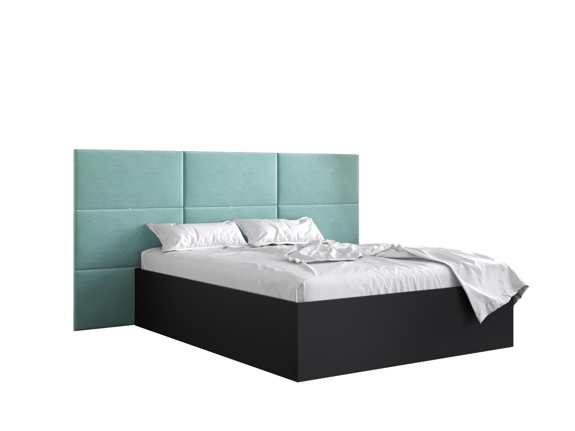 Pat matrimonial cu tăblie tapițată 160 cm Brittany 2 (Negru mat + mentă) (cu somieră)