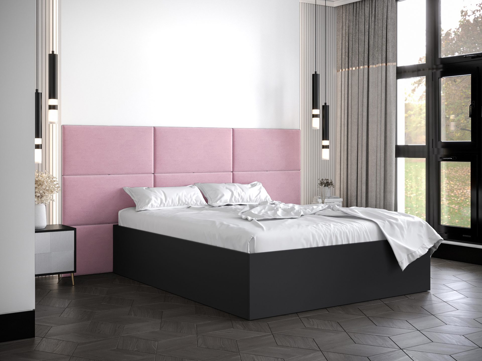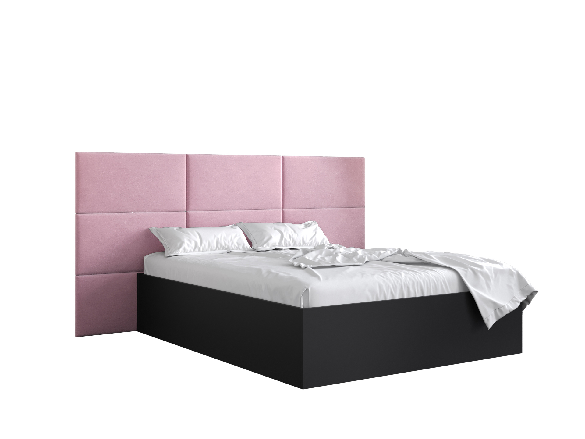 Pat matrimonial cu tăblie tapițată 160 cm Brittany 2 (Negru mat + roz) (cu somieră)