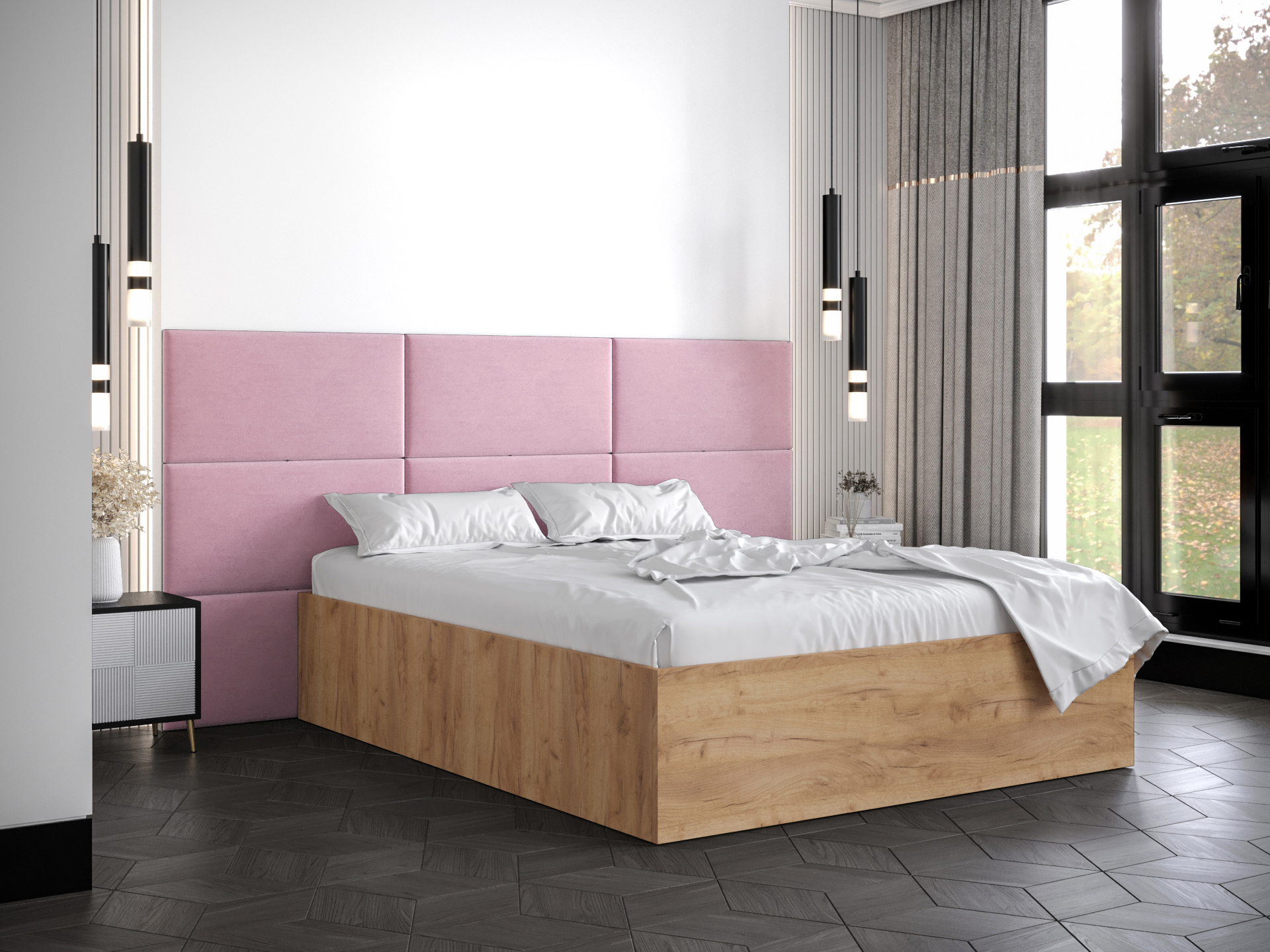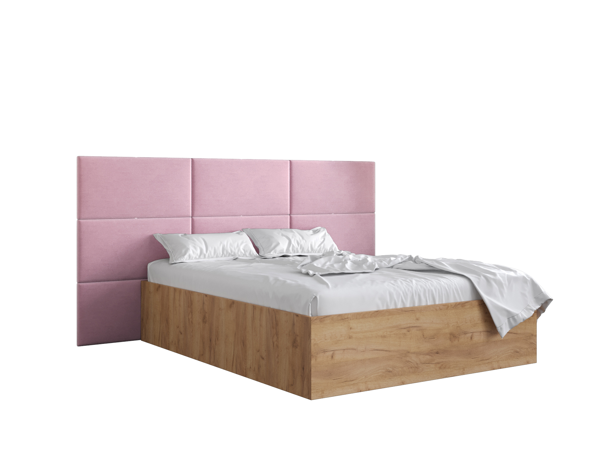 Pat matrimonial cu tăblie tapițată 160 cm Brittany 2 (Stejar craft auriu + roz) (cu somieră)