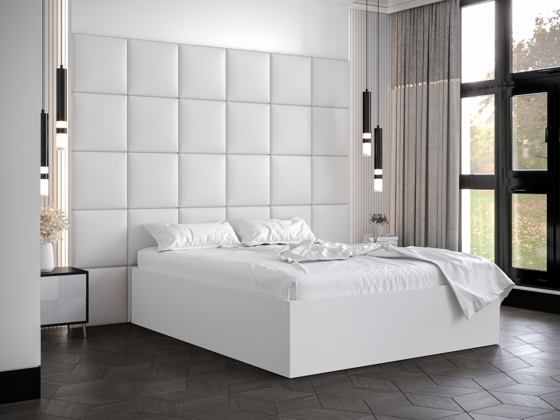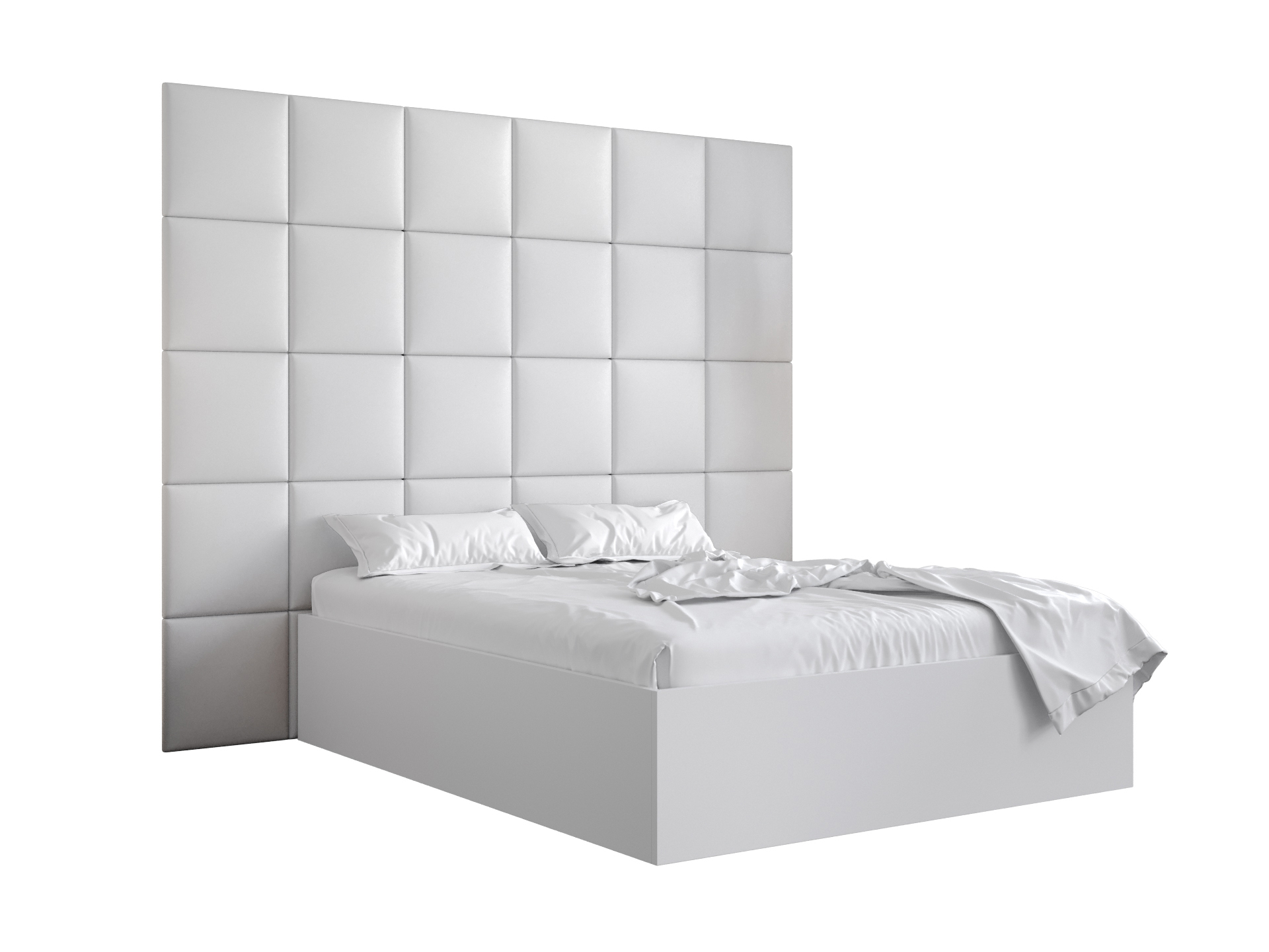 Pat matrimonial cu tăblie tapițată 160 cm Brittany 3 (Alb mat + Alb) (cu somieră)