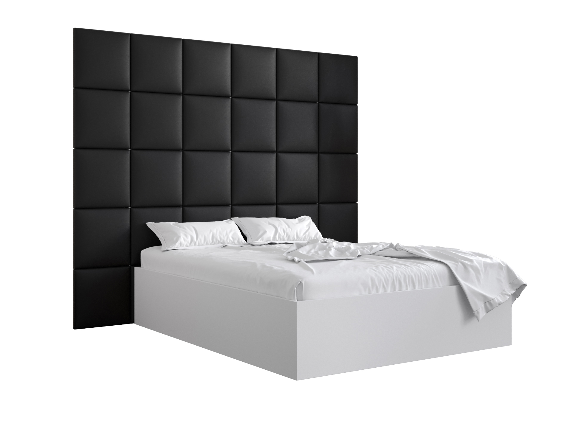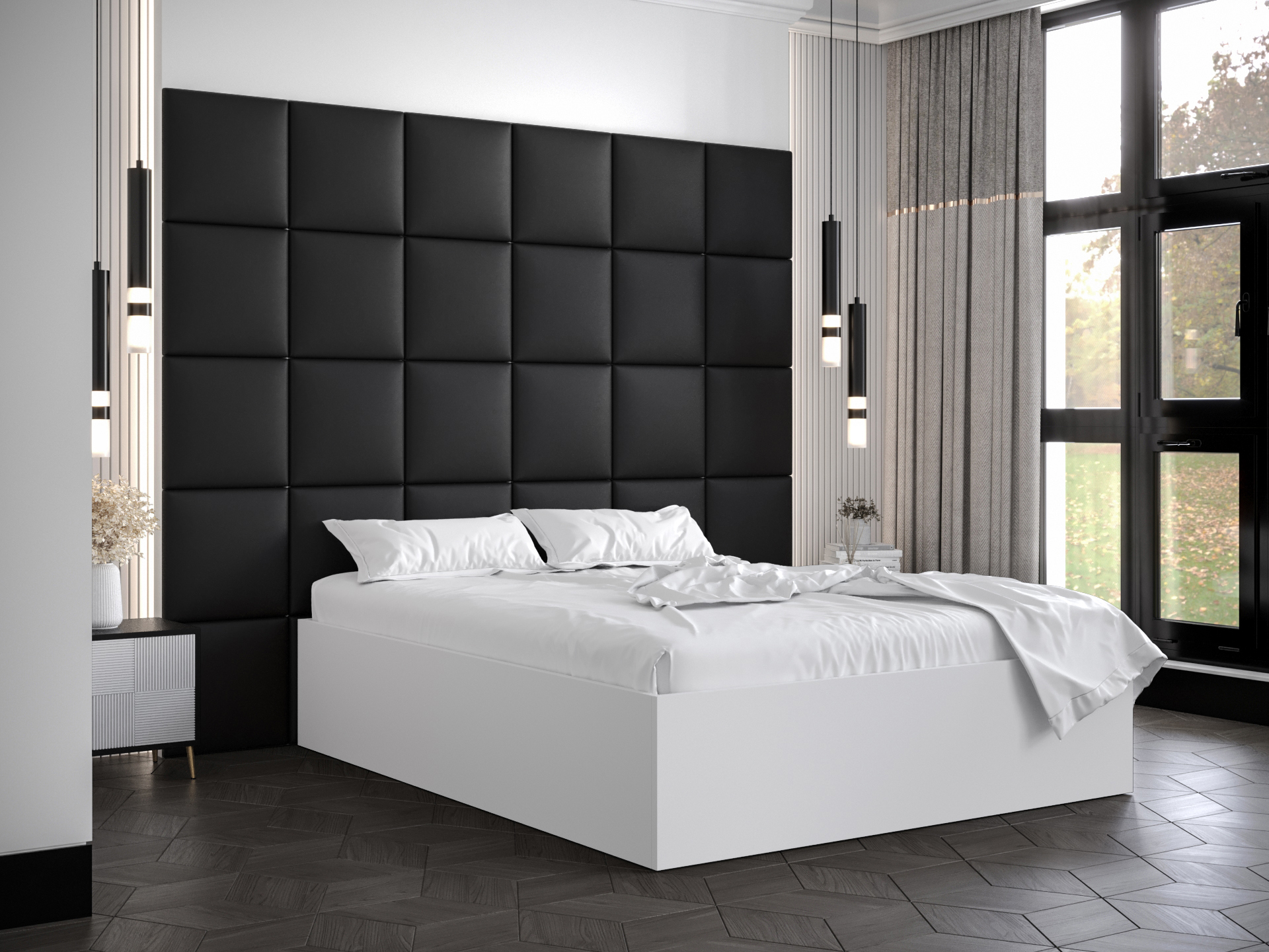 Pat matrimonial cu tăblie tapițată 160 cm Brittany 3 (Alb mat + Negru) (cu somieră)