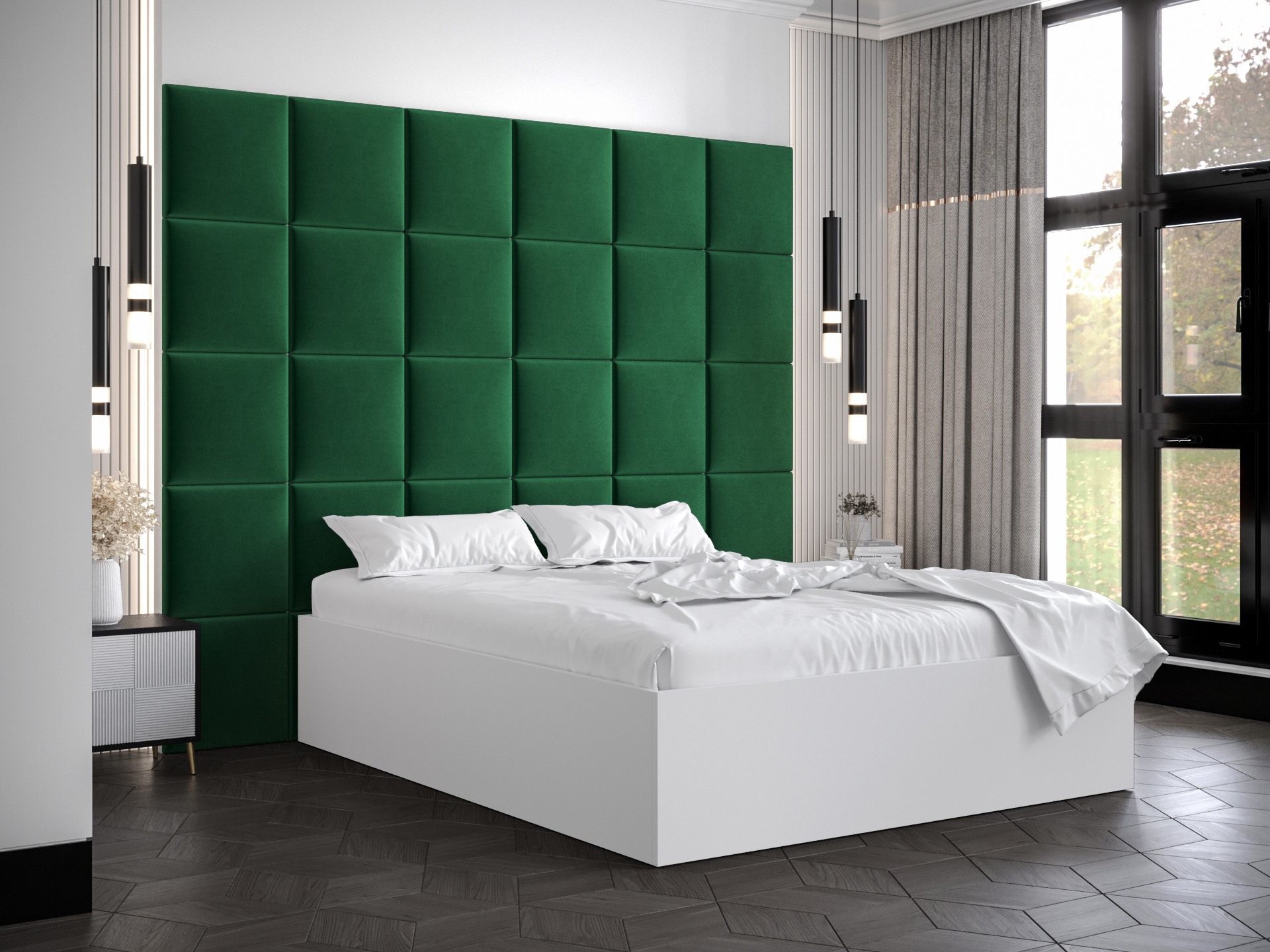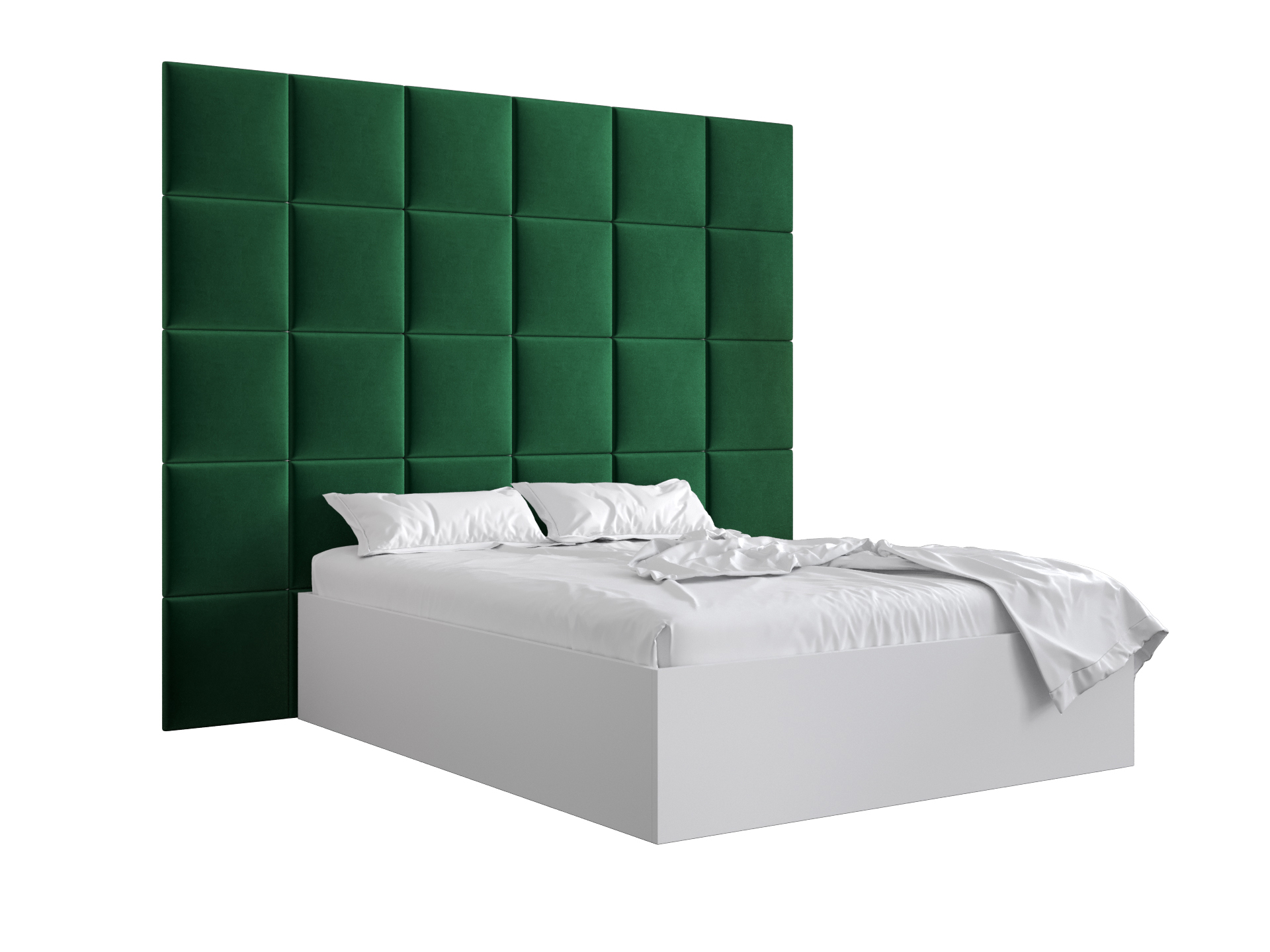 Pat matrimonial cu tăblie tapițată 160 cm Brittany 3 (Alb mat + verde) (cu somieră)