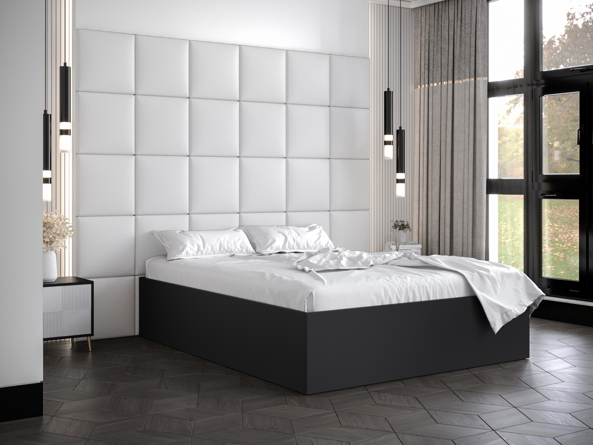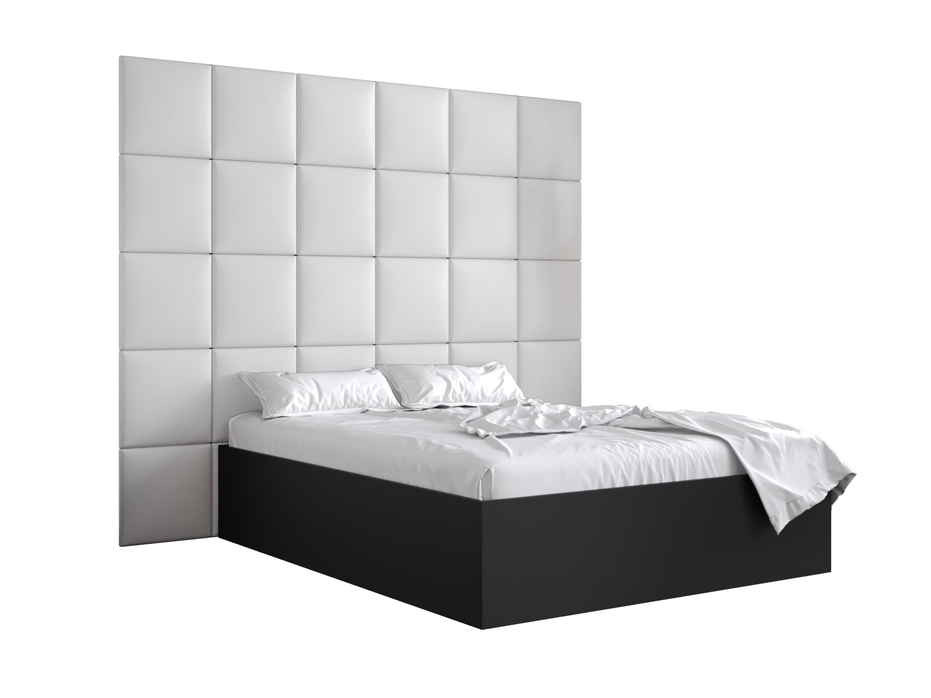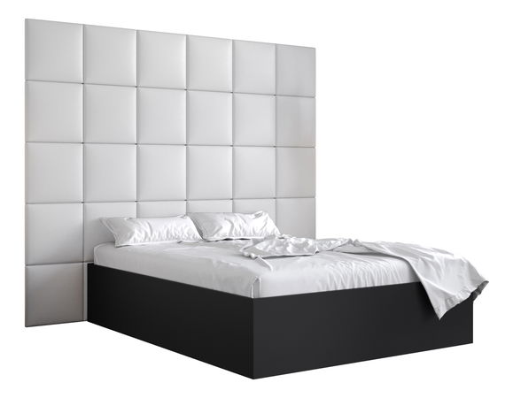 Pat matrimonial cu tăblie tapițată 160 cm Brittany 3 (Negru mat + Alb) (cu somieră)