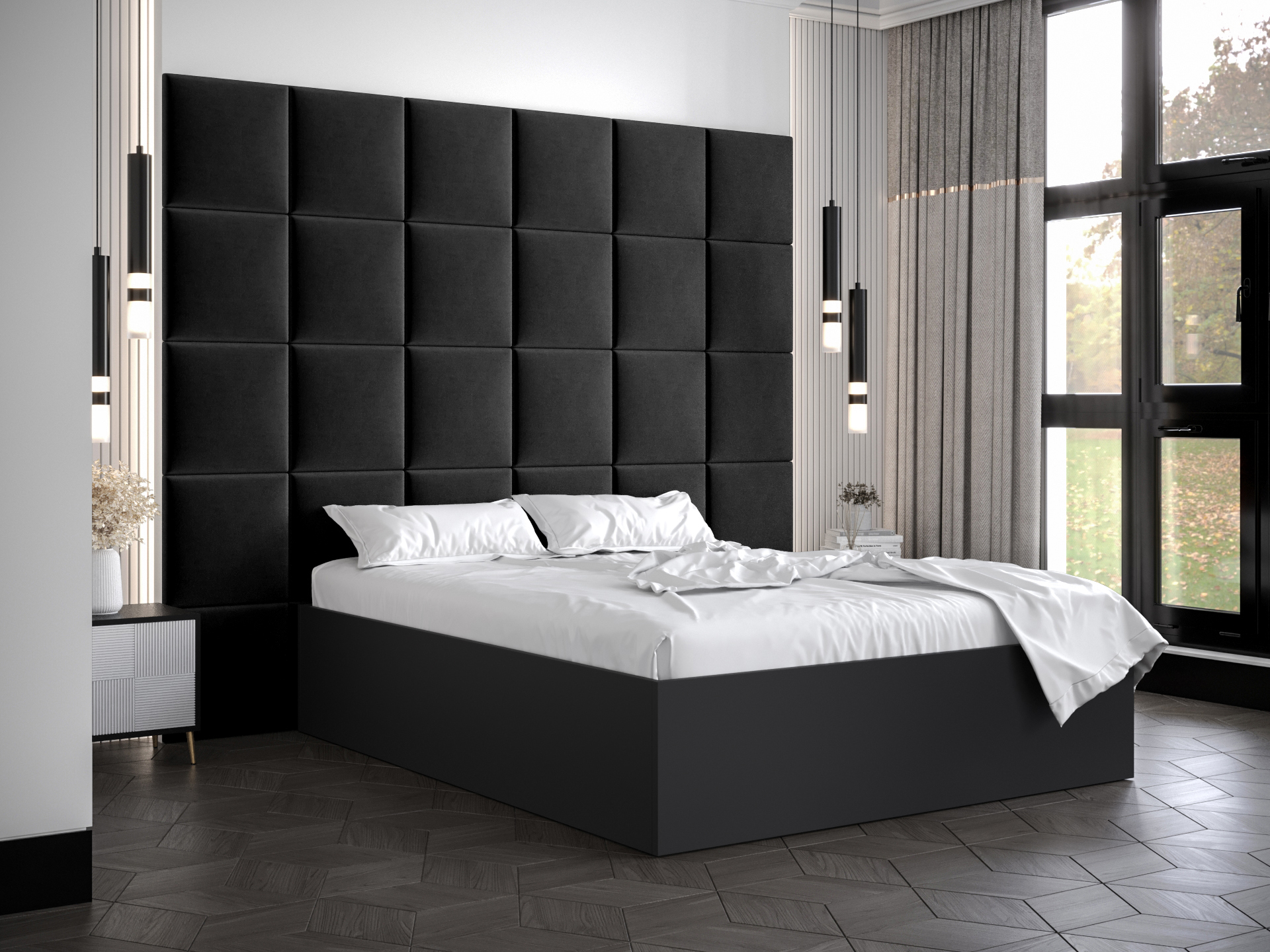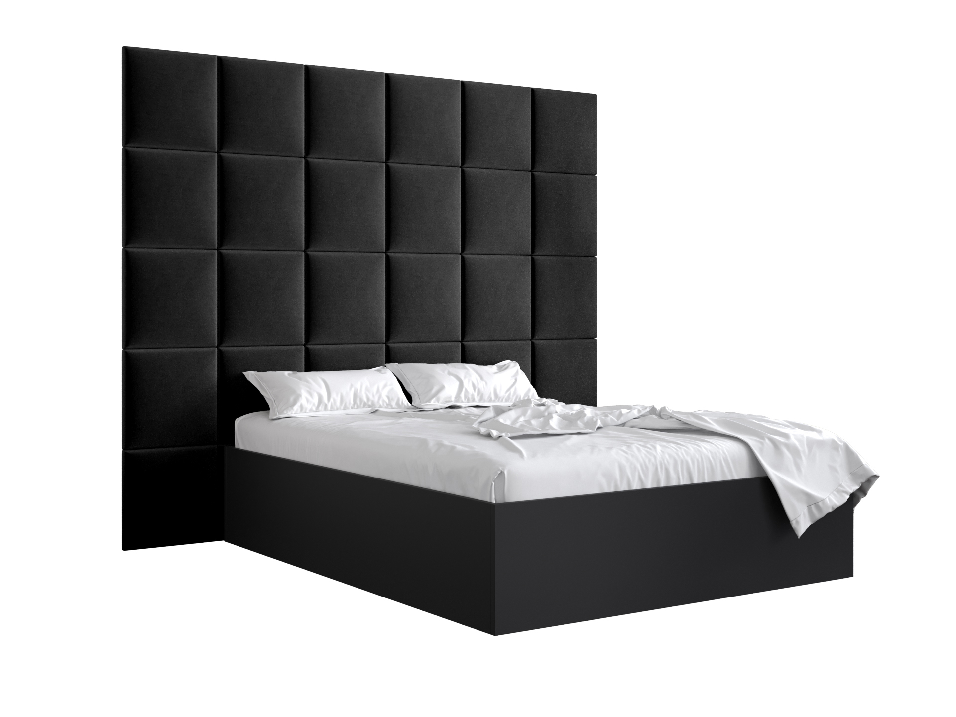 Pat matrimonial cu tăblie tapițată 160 cm Brittany 3 (Negru mat + Negru) (cu somieră)