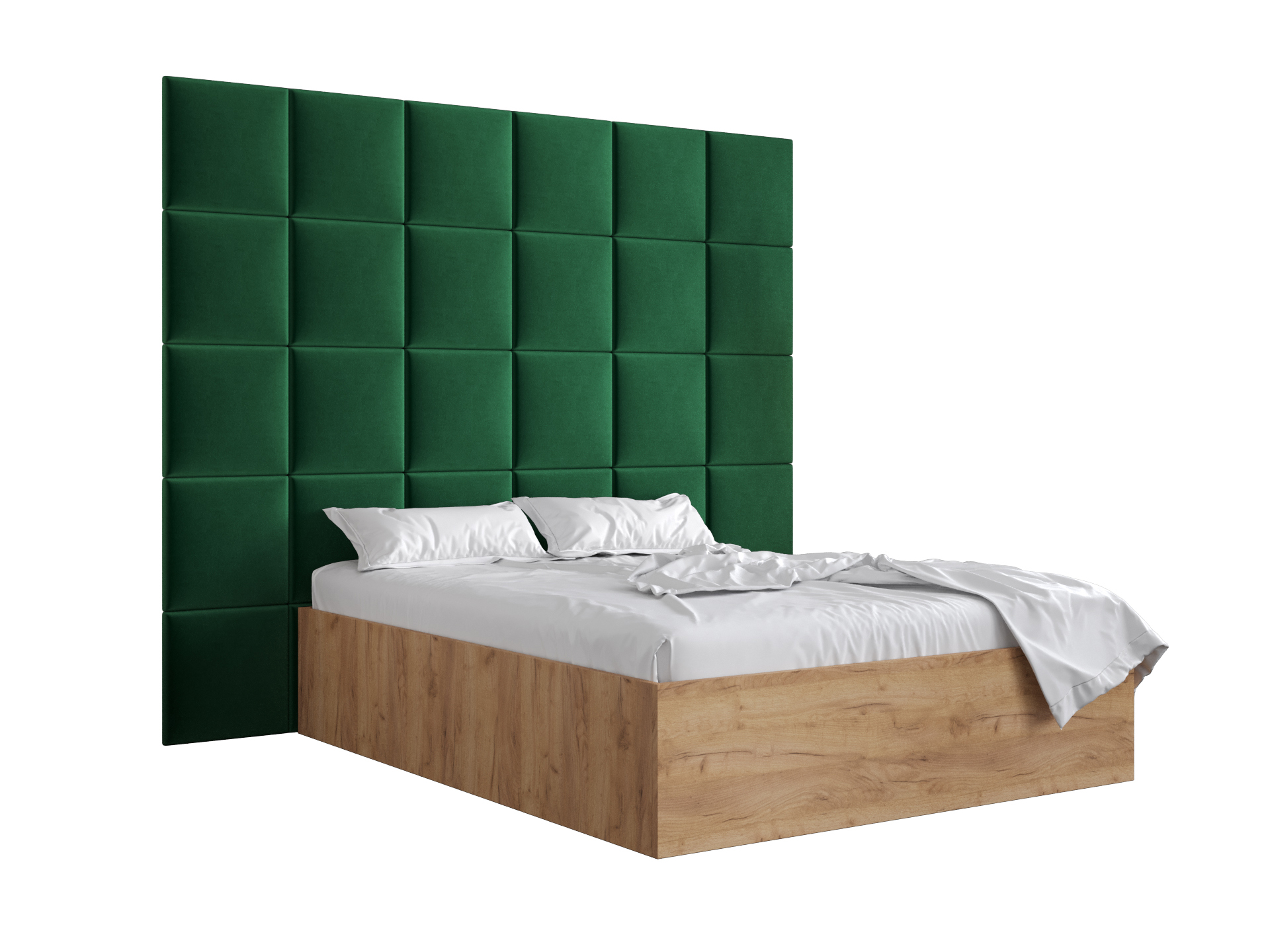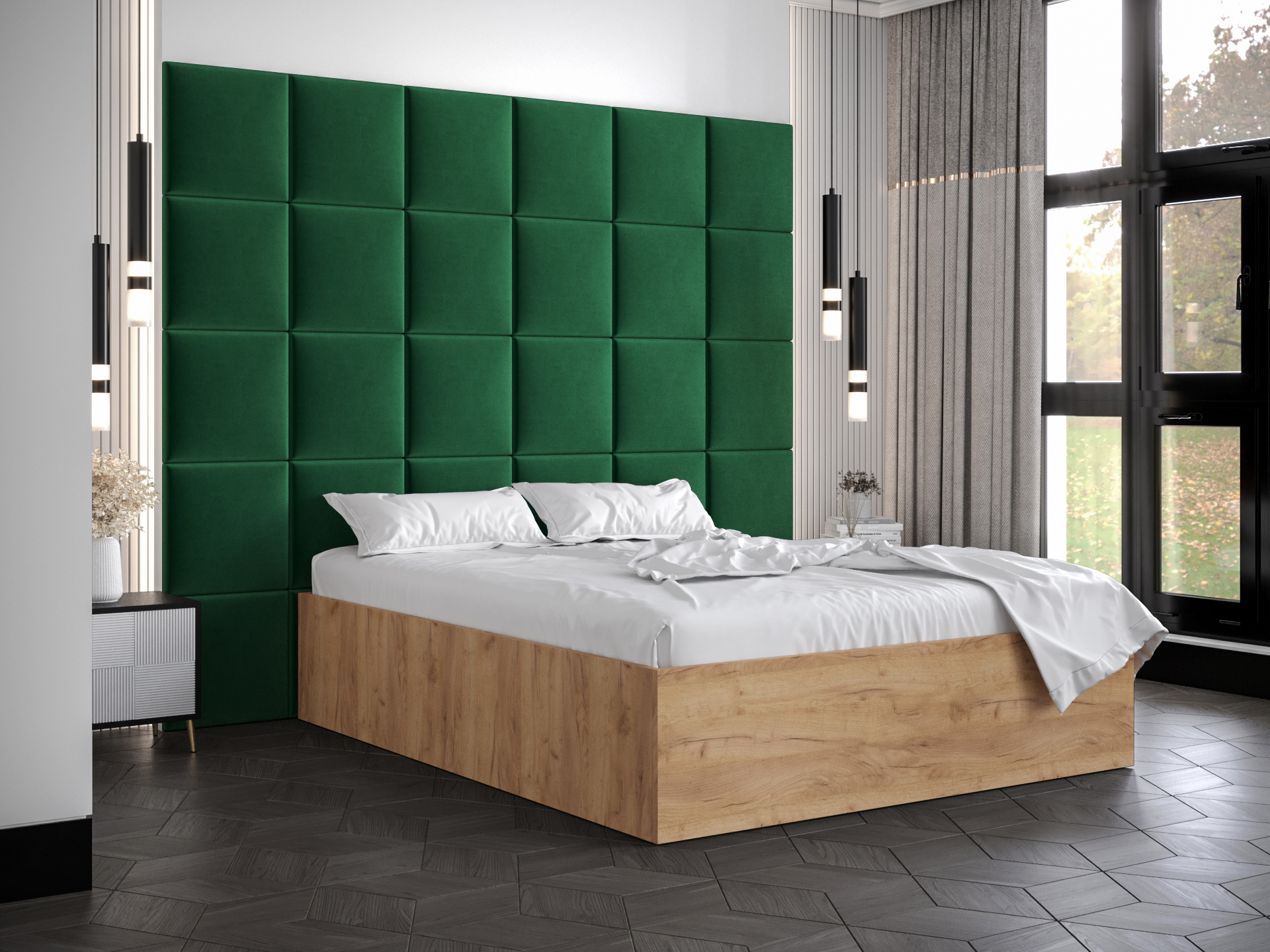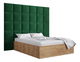 Pat matrimonial cu tăblie tapițată 160 cm Brittany 3 (Stejar craft auriu + verde) (cu somieră)