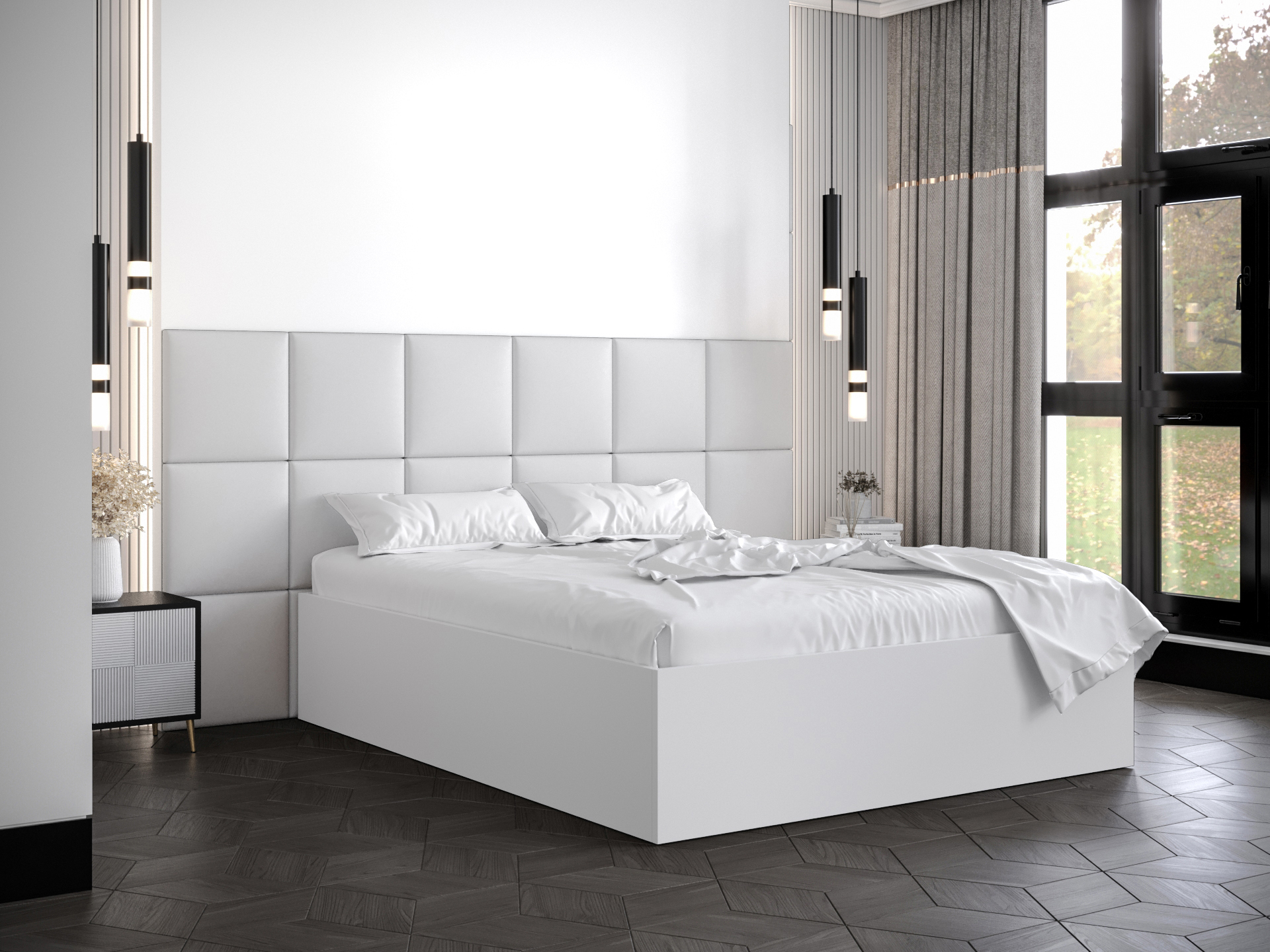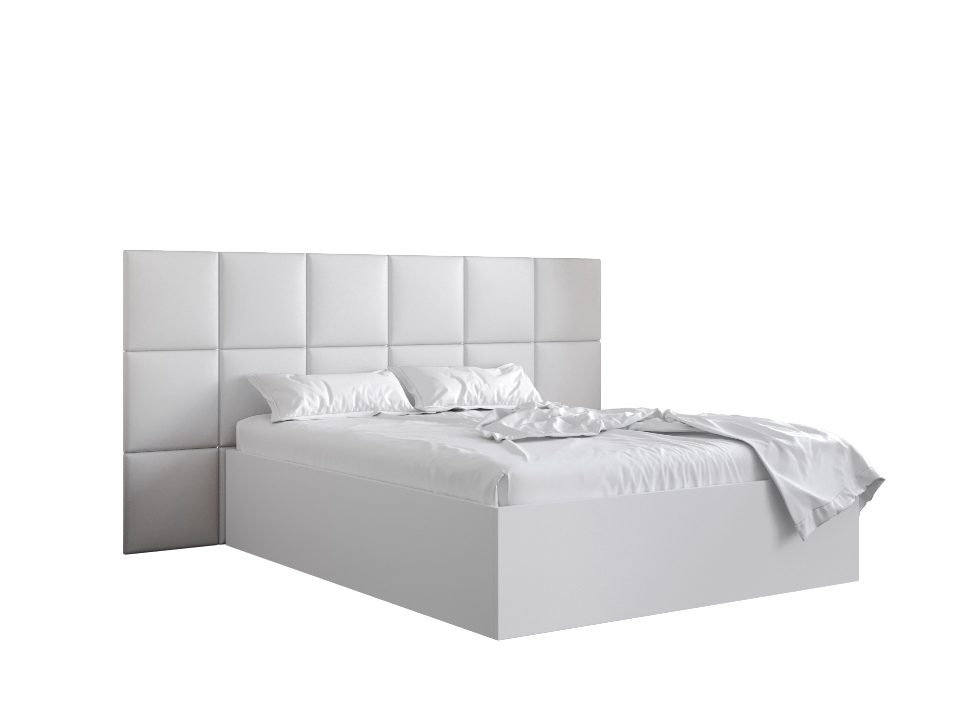 Pat matrimonial cu tăblie tapițată 160 cm Brittany 4 (Alb mat + Alb) (cu somieră)