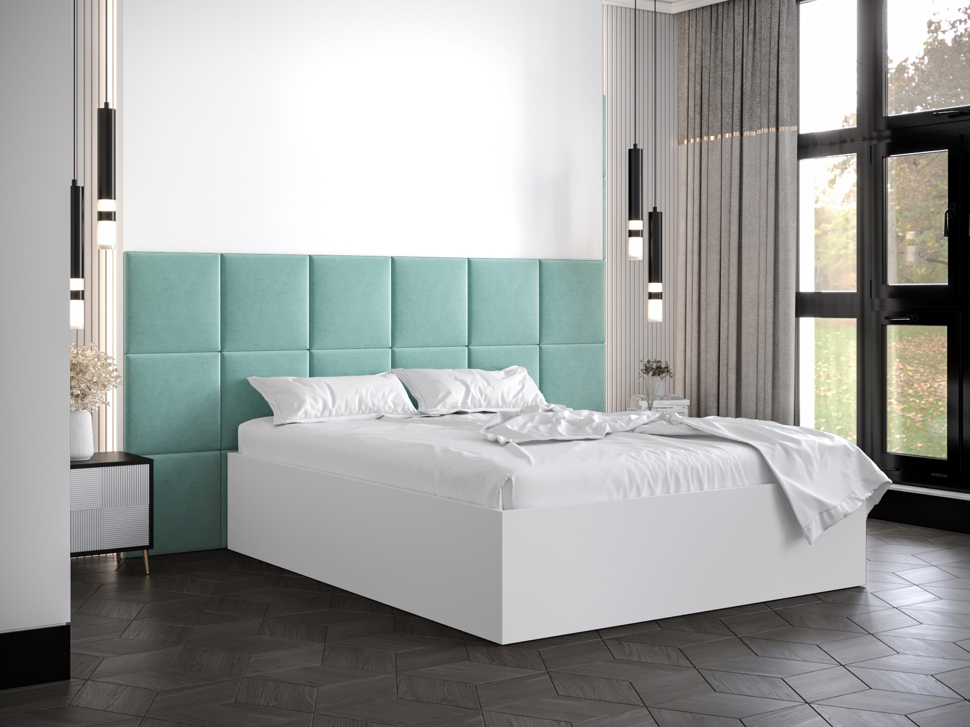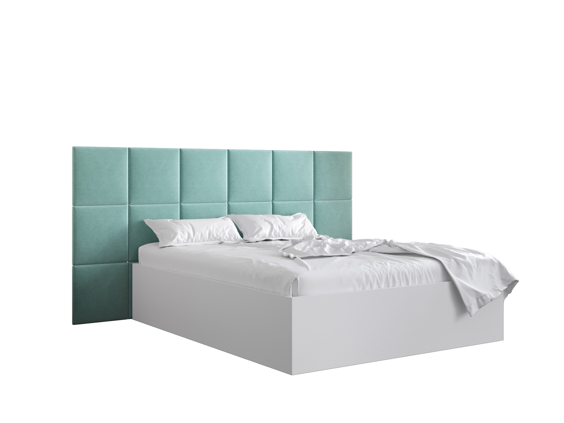 Pat matrimonial cu tăblie tapițată 160 cm Brittany 4 (Alb mat + mentă) (cu somieră)