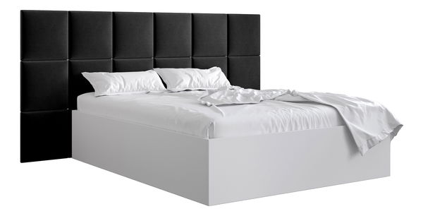 Pat matrimonial cu tăblie tapițată 160 cm Brittany 4 (Alb mat + Negru) (cu somieră)