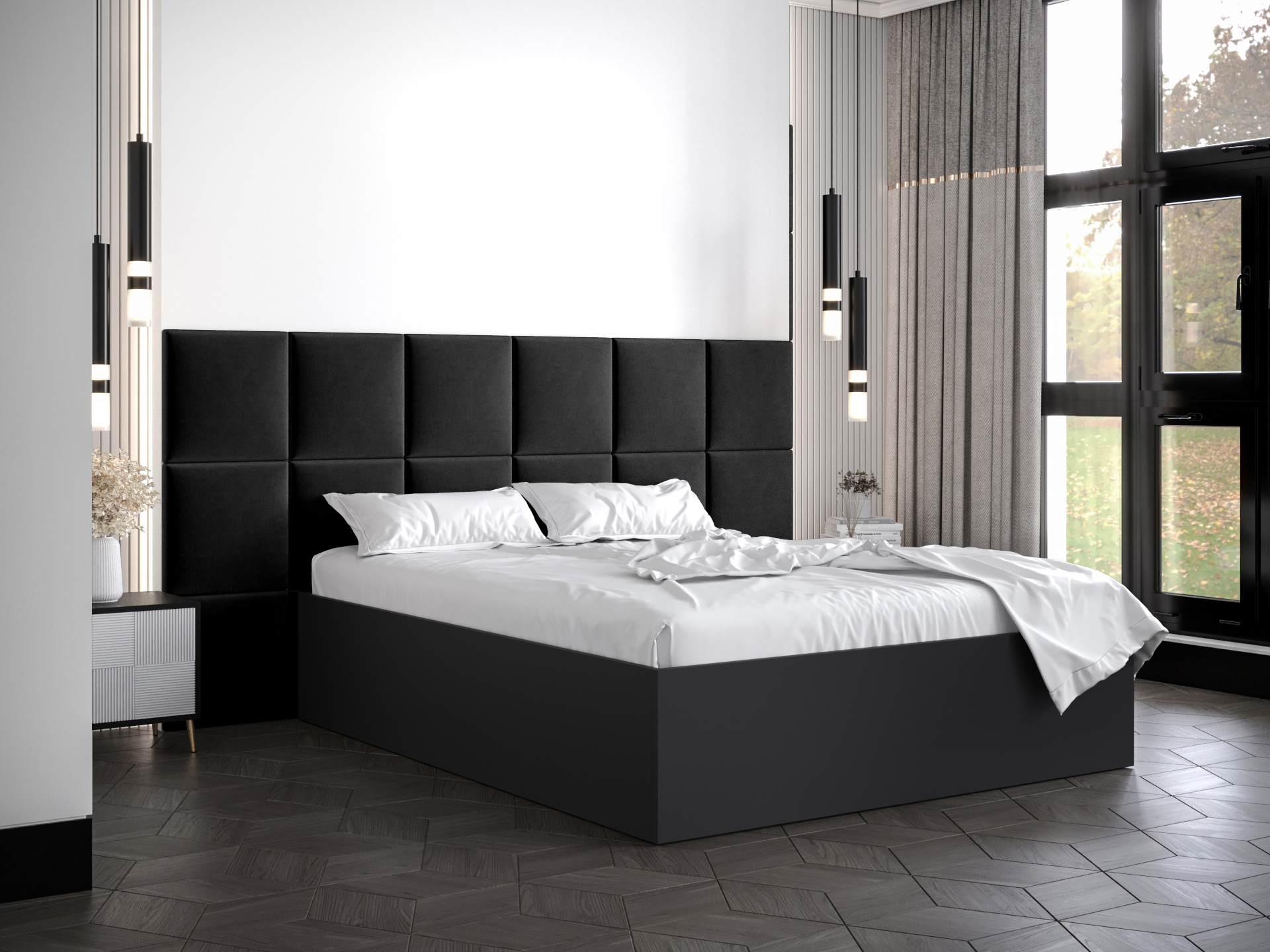Pat matrimonial cu tăblie tapițată 160 cm Brittany 4 (Negru mat + Negru) (cu somieră)