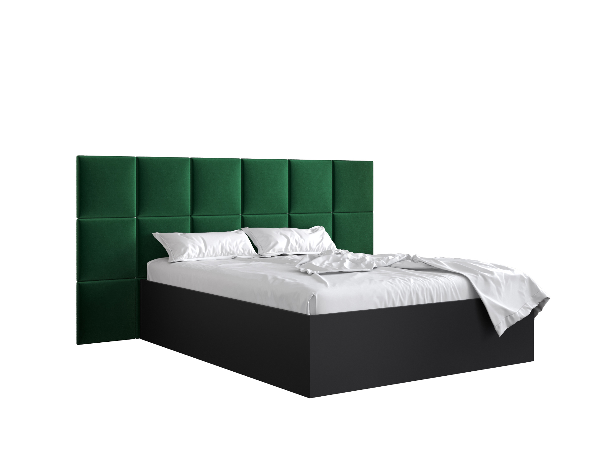 Pat matrimonial cu tăblie tapițată 160 cm Brittany 4 (Negru mat + verde) (cu somieră)