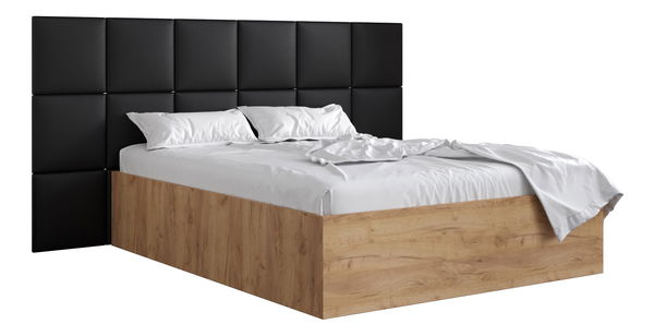 Pat matrimonial cu tăblie tapițată 160 cm Brittany 4 (Stejar craft auriu + Negru) (cu somieră)