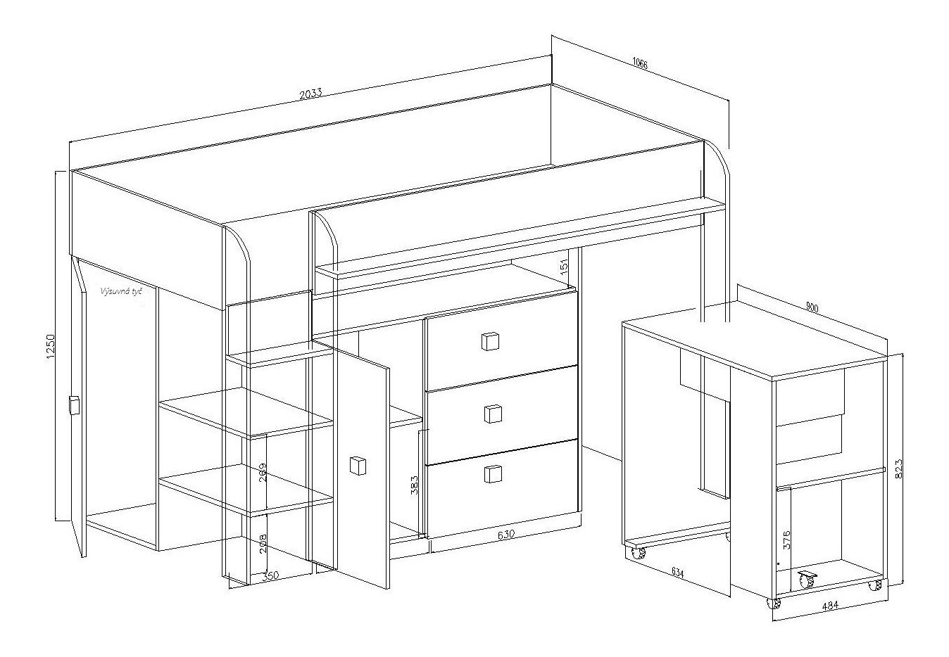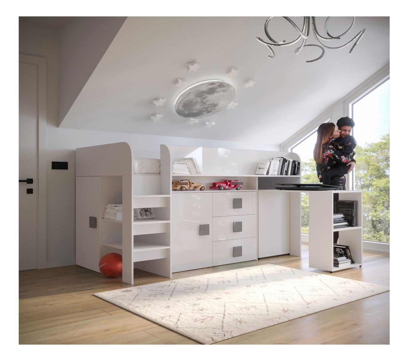 Pat multifuncțional 90 cm Toreno 1 (Alb + alb lucios + mânere gri lucios)