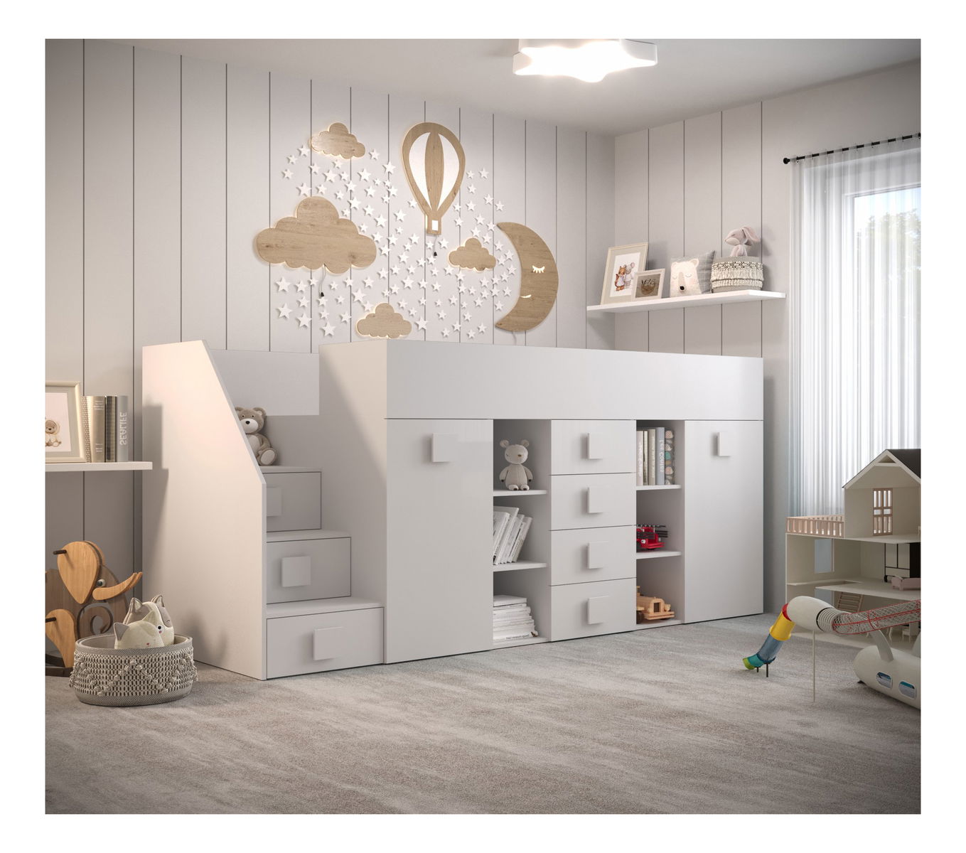 - Pat multifuncțional 90 cm Toreno 3 (Alb + alb lucios + mânere alb lucios) (S)