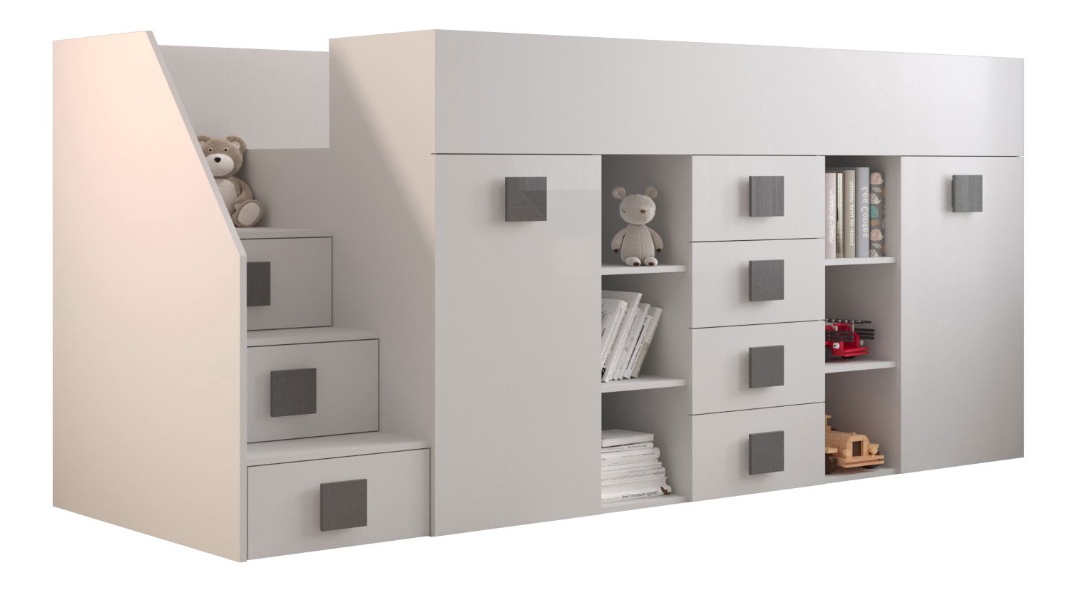 Pat multifuncțional 90 cm Toreno 3 (Alb + alb lucios + mânere gri lucios) (S)