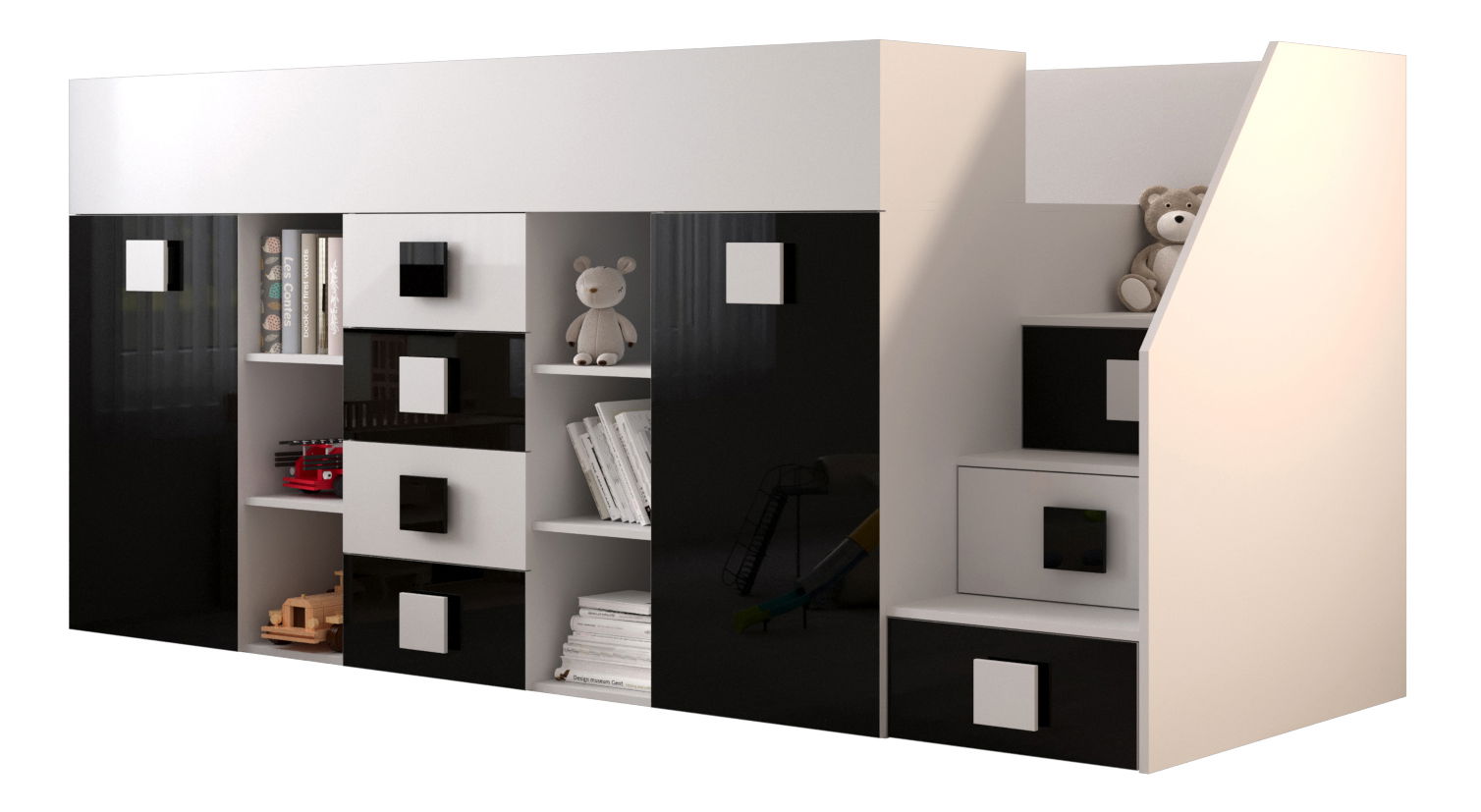 Pat multifuncțional 90 cm Toreno 3 (Alb + alb lucios + negru lucios) (D)