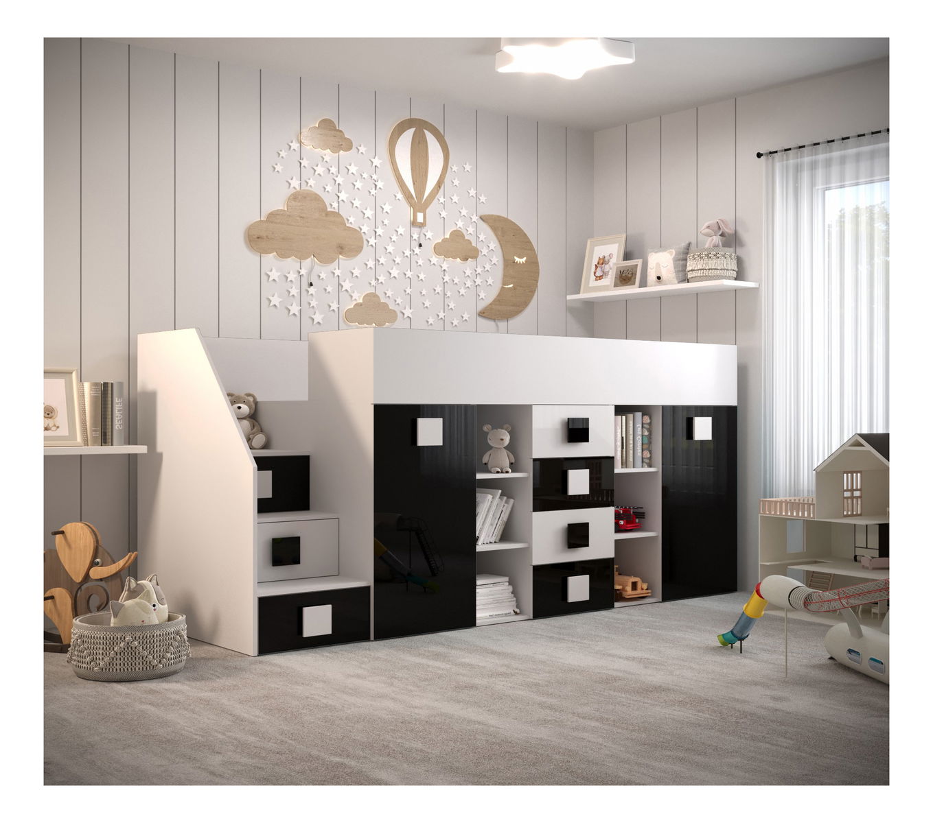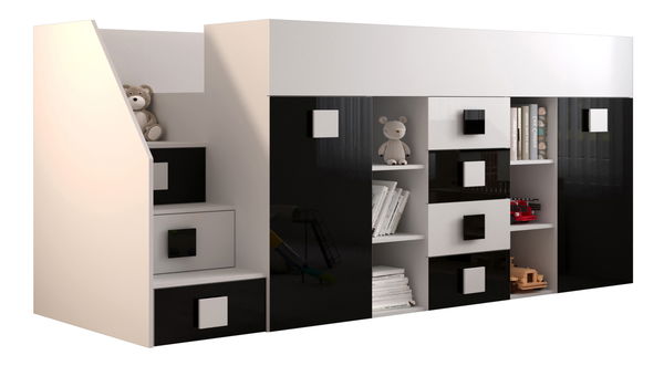 - Pat multifuncțional 90 cm Toreno 3 (Alb + alb lucios + negru lucios) (S)