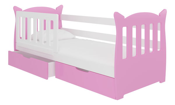 Pat pentru copii 160x75 cm Lenka (cu somieră și saltea) (Alb + Roz)