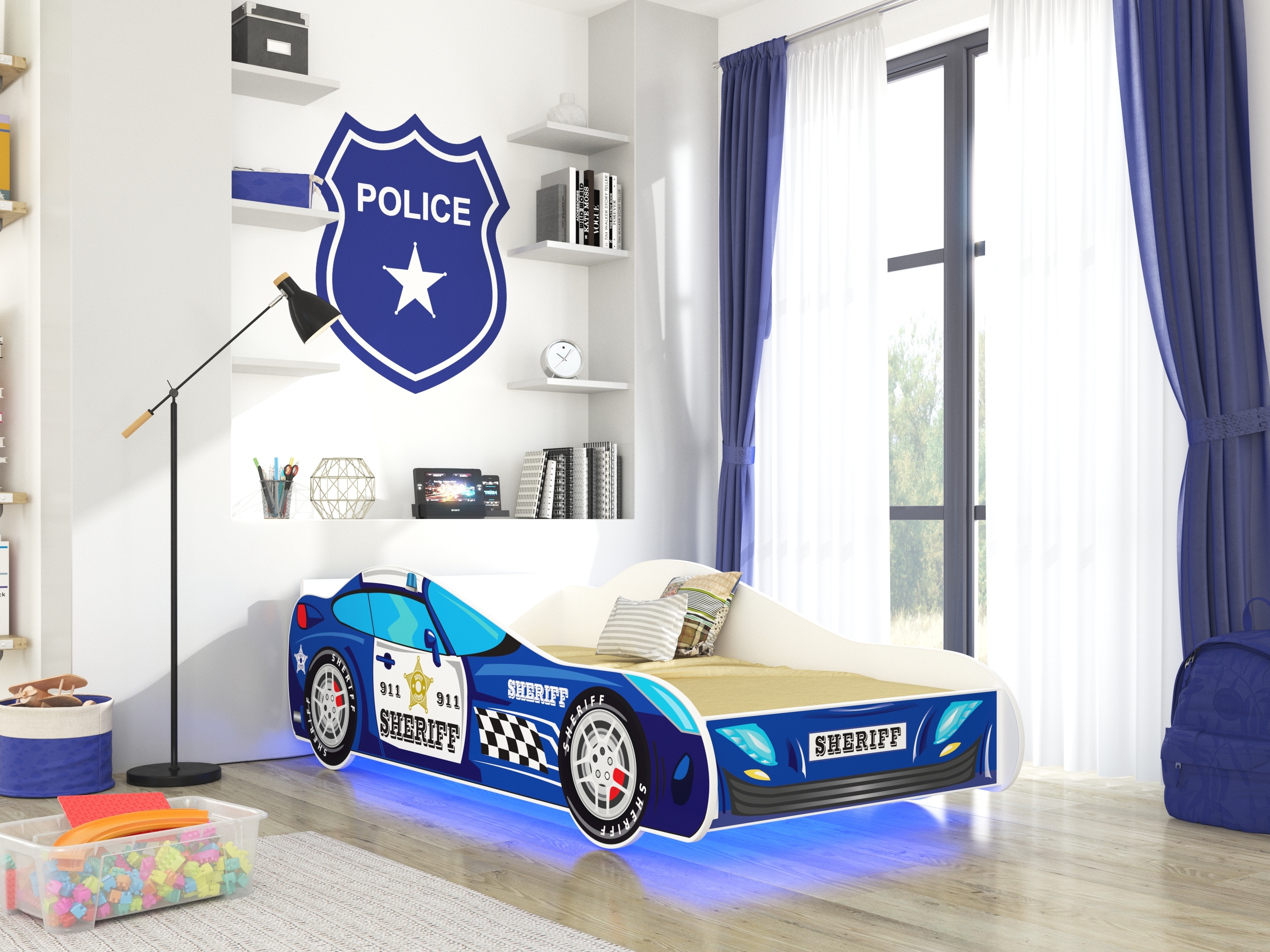 Pat pentru copii 160x80 cm Șerif (cu somieră și saltea) (Albastru)