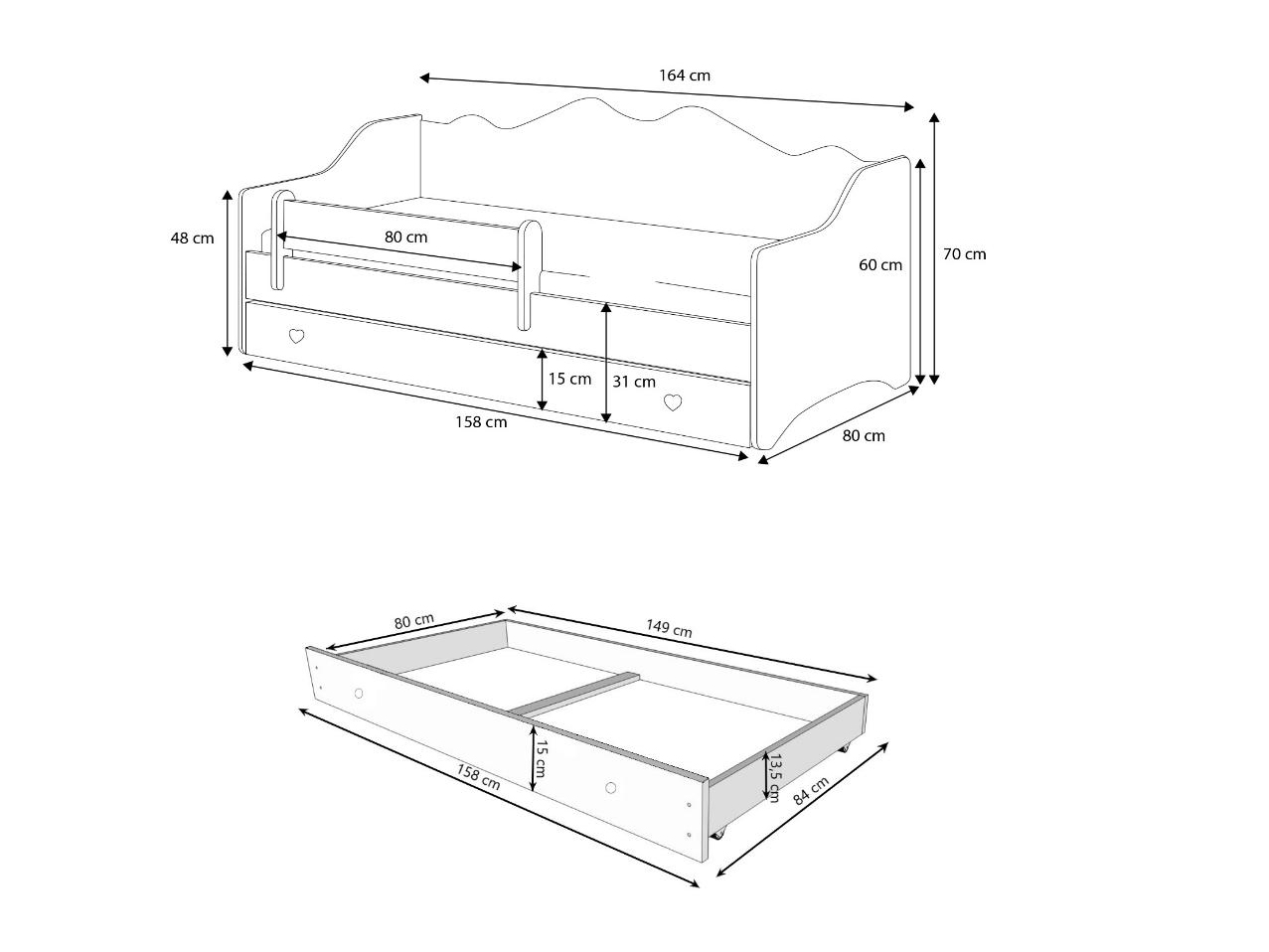 Pat pentru copii 160x80 cm Ester I (cu somieră și saltea) (Alb + Gri)
