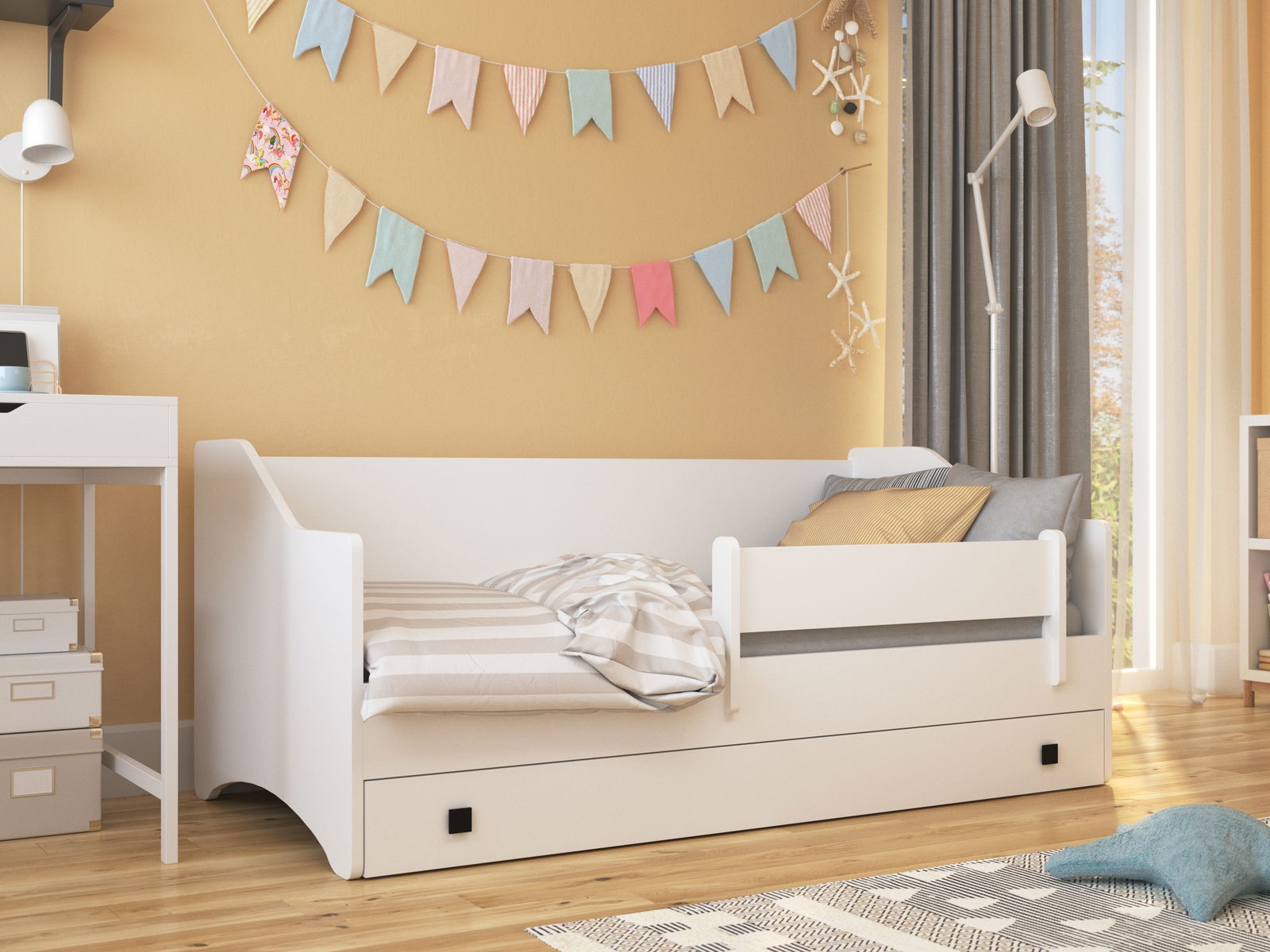 Pat pentru copii 160x80 cm Naty I (cu somieră și saltea) (Alb + Gri)