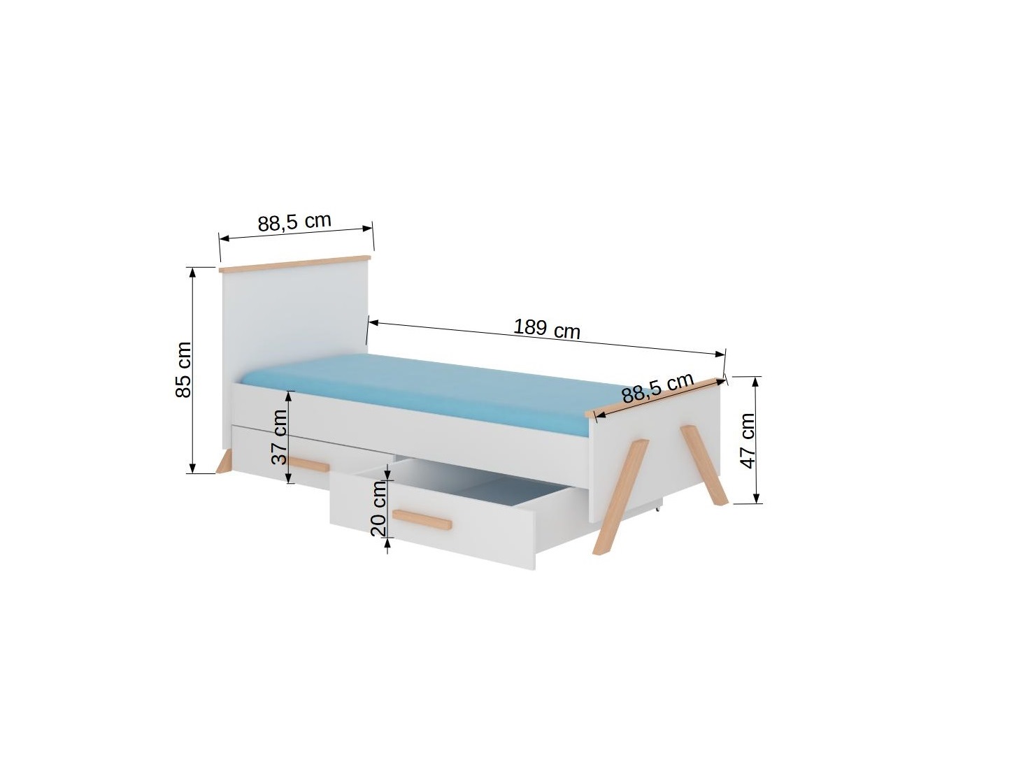 Pat pentru copii 180x80 cm Karolina (cu somieră) (fag natural + alb)