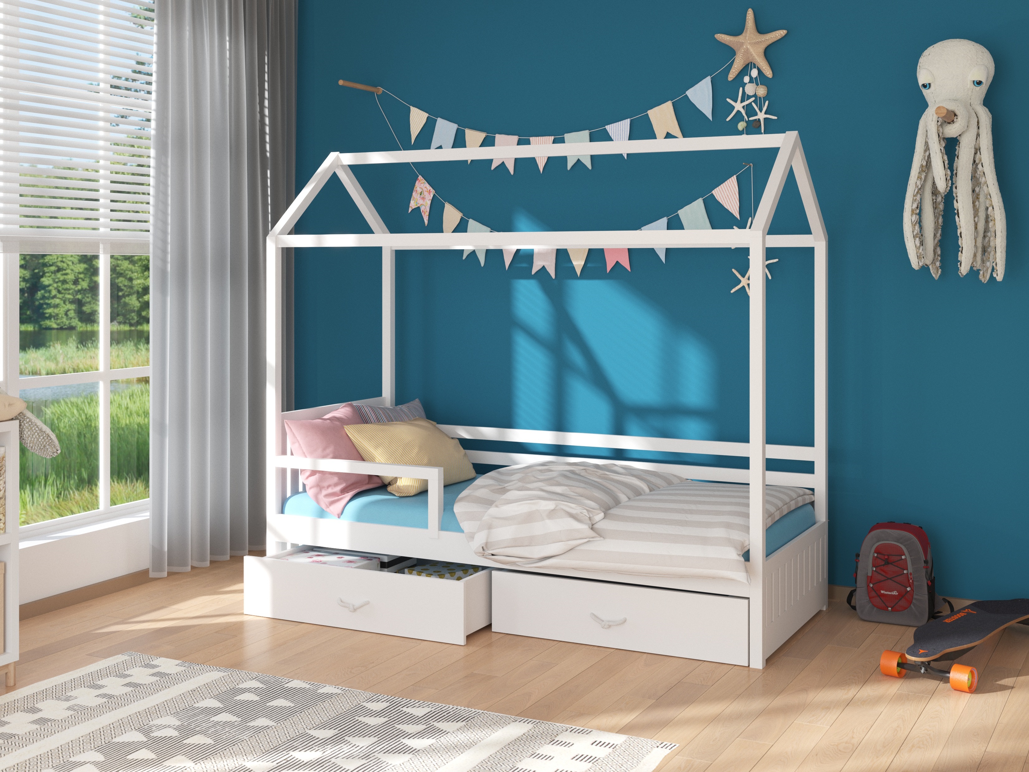 Pat pentru copii 180x80 cm Rosie II (cu somieră și saltea) (Alb)