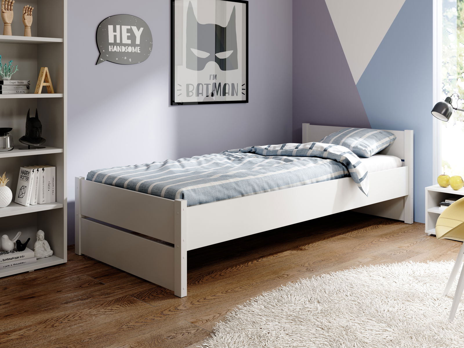 Pat pentru copii 200x90 cm Marcel I (cu somieră și saltea) (Alb)