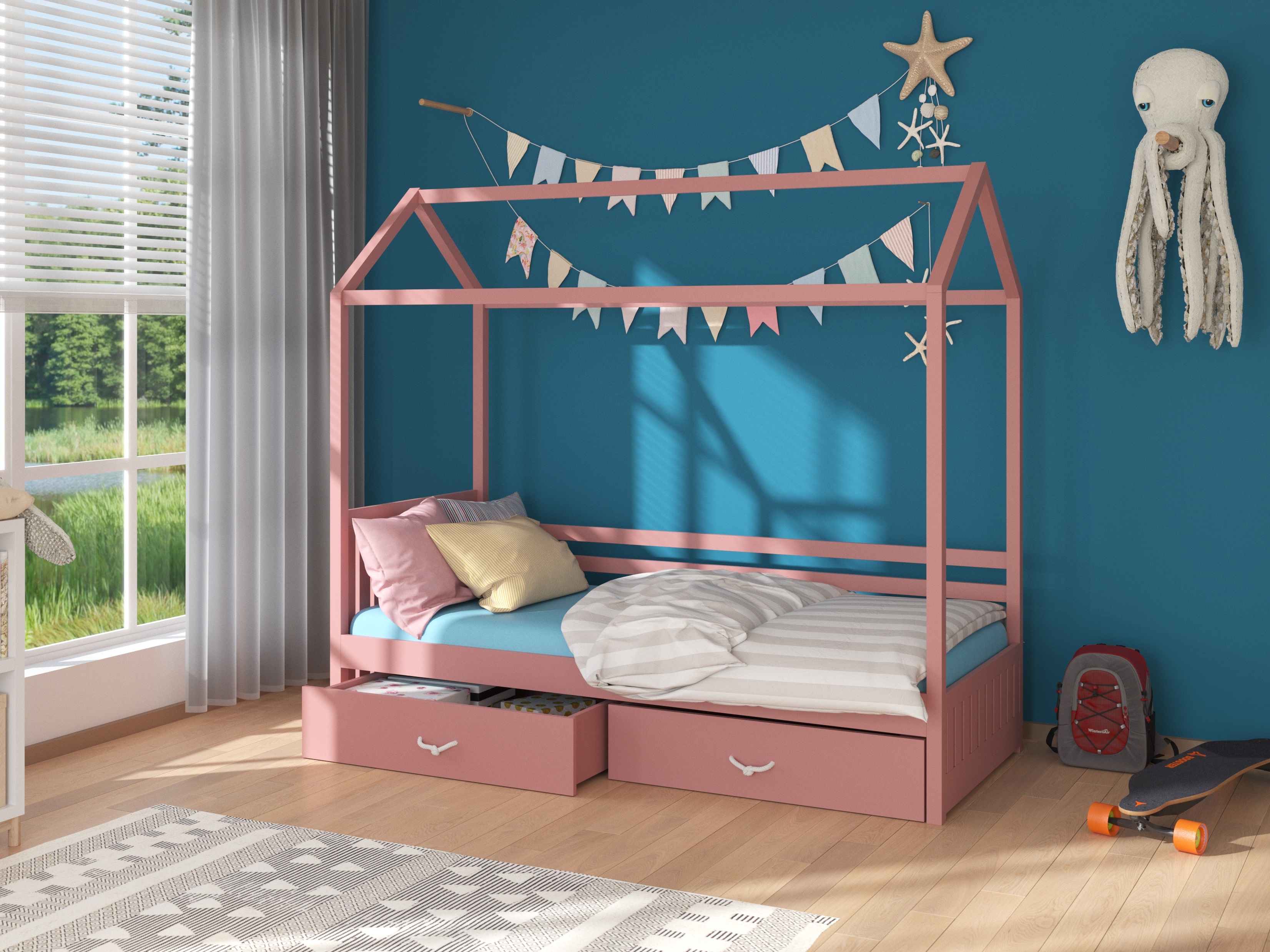 Pat pentru copii 200x90 cm Rosie I (cu somieră) (Roz)