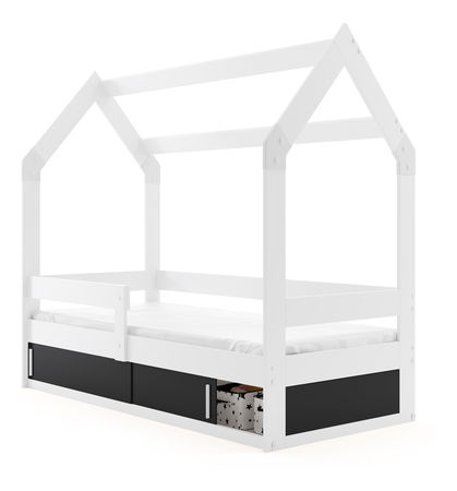 Pat pentru copii 80 cm Dormo (Alb + Negru) (cu somieră, saltea și sp. depozitare)