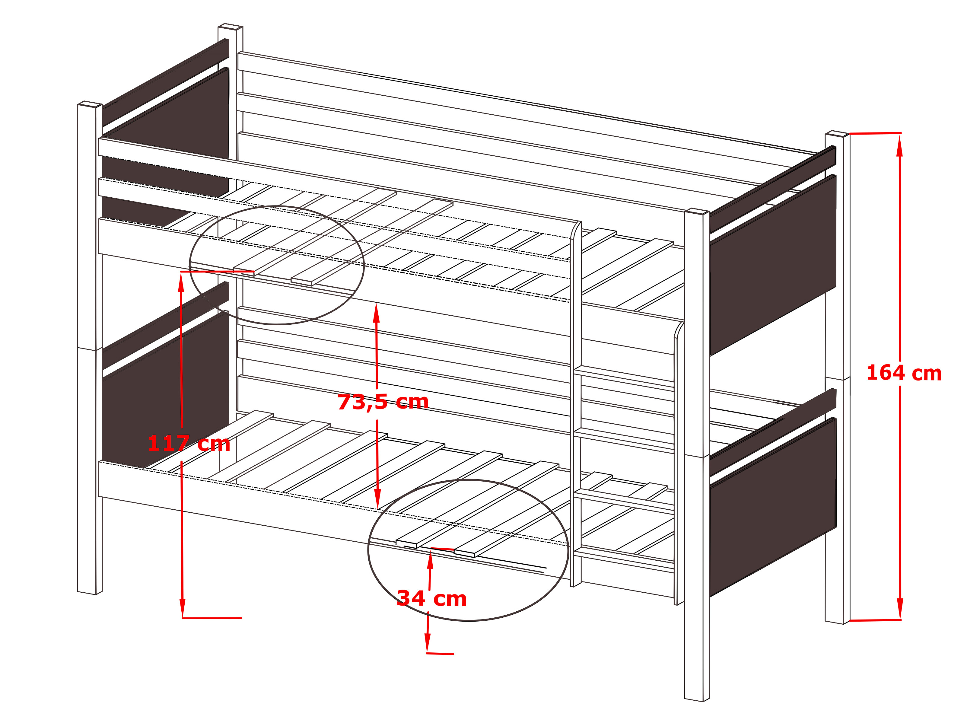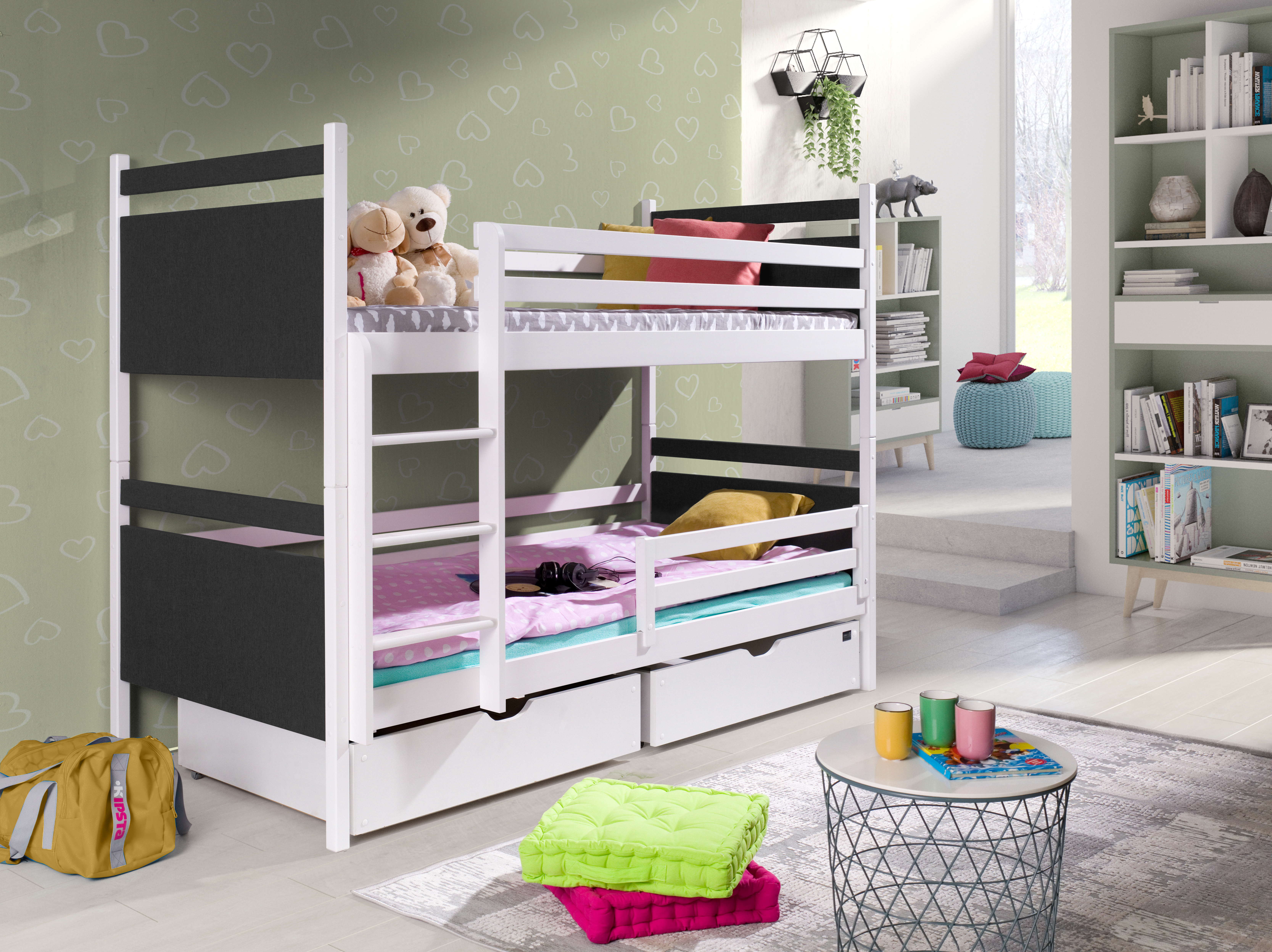 Patul supraetajat Talia este un plus excelent pentru o cameră pentru copii. Patul superior și inferior sunt asigurate cu bariere care împiedică căderea în timpul somnului. Este fabricat din scânduri de lemn, cu margini finisate astfel încât să nu reprezinte un pericol pentru copii. Vopselele și lacurile utilizate îndeplinesc toate standardele necesare. Patul conține și spațiu de depozitare cu roți cauciucate, pentru a proteja podeaua.